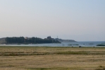 Výhled na jezero, máme půl deváté. Nocovat budeme buď u kláštera, nebo někde při lesíku na vzdáleném břehu, kam se nám dosud nechtělo kvůli lidem, zvířatům a psovi.