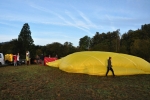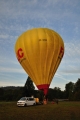 Za zámeckou zahradou je posečená louka a báječný výhled na právě vycházející slunce. A také mlhu, plující nad Vltavou ke Krumlovu. Červánky zbarvují mraky do nachova a vypadá to, že bude krásný den. Střídavě pomáhám s přípravou balónu a dokumentuji jeho první nadechnutí. Vháníme mu vzduch do ohromné žlutočervené tlamy, která se tím neustále zvětšuje. Teprve poté se nažhaví hořák a ohřátý vzduch zvolna neforemný tvar zakulacuje.