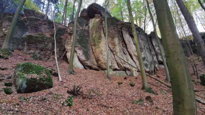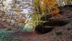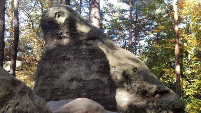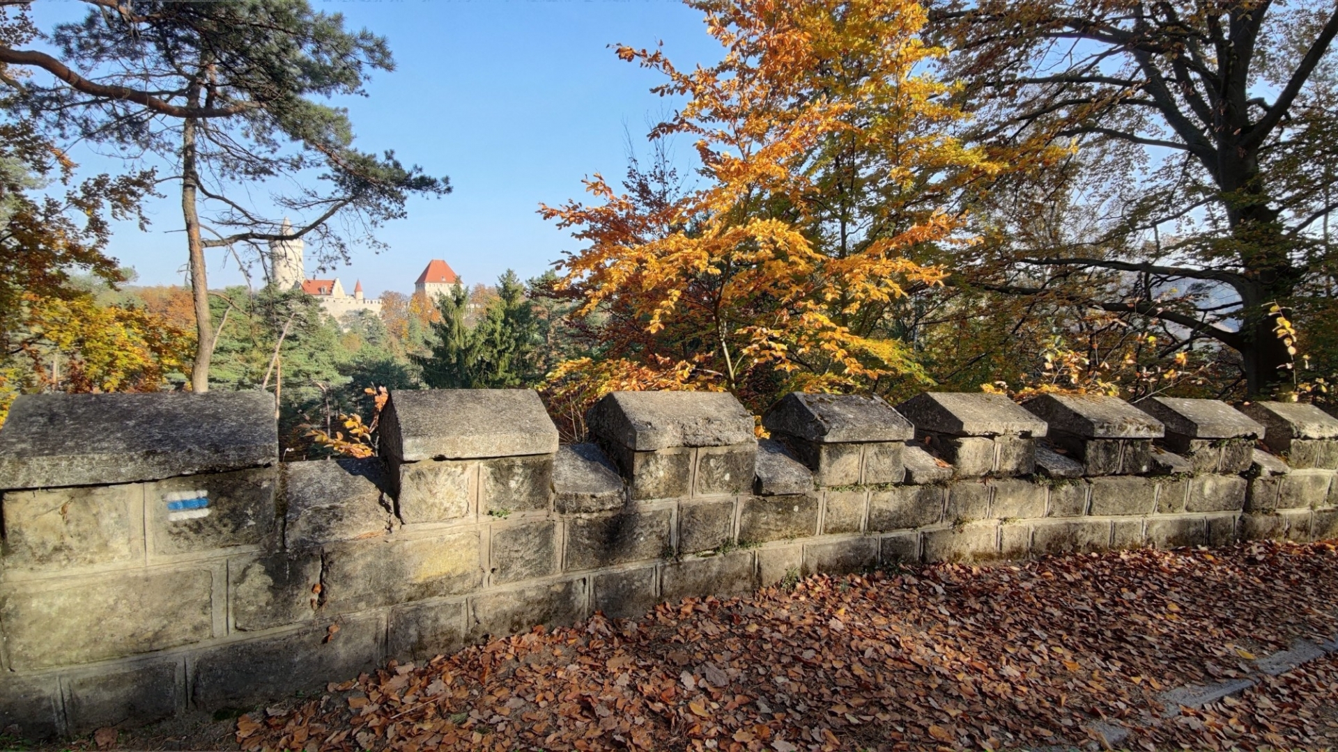 Stoupání na náhorní plošinu mi odkryje další hezké výhledy na známý hrad. Ještě se zastavím kvůli balónu, který žene vítr přímo nad moji hlavu. Na chvilku také u zámku Kokořín, kde vítr právě sčesává uschlé listí z okolních stromů. Za obcí sjedu do Truskavenského dolu k dalším skalním věžím, jejichž jména se mi jistě brzy zapomenu - Chlumáč, Lukešová věž, Troglodyt. Podzimní zklidnění krajiny se přeneslo i do mé hlavy. Oko potěšily její proměny a barvy. Vítám další tři dny v zdejších skalách, roklích i na hřebenech. Je úžasné pozorovat, co zde vytvořila matka příroda.