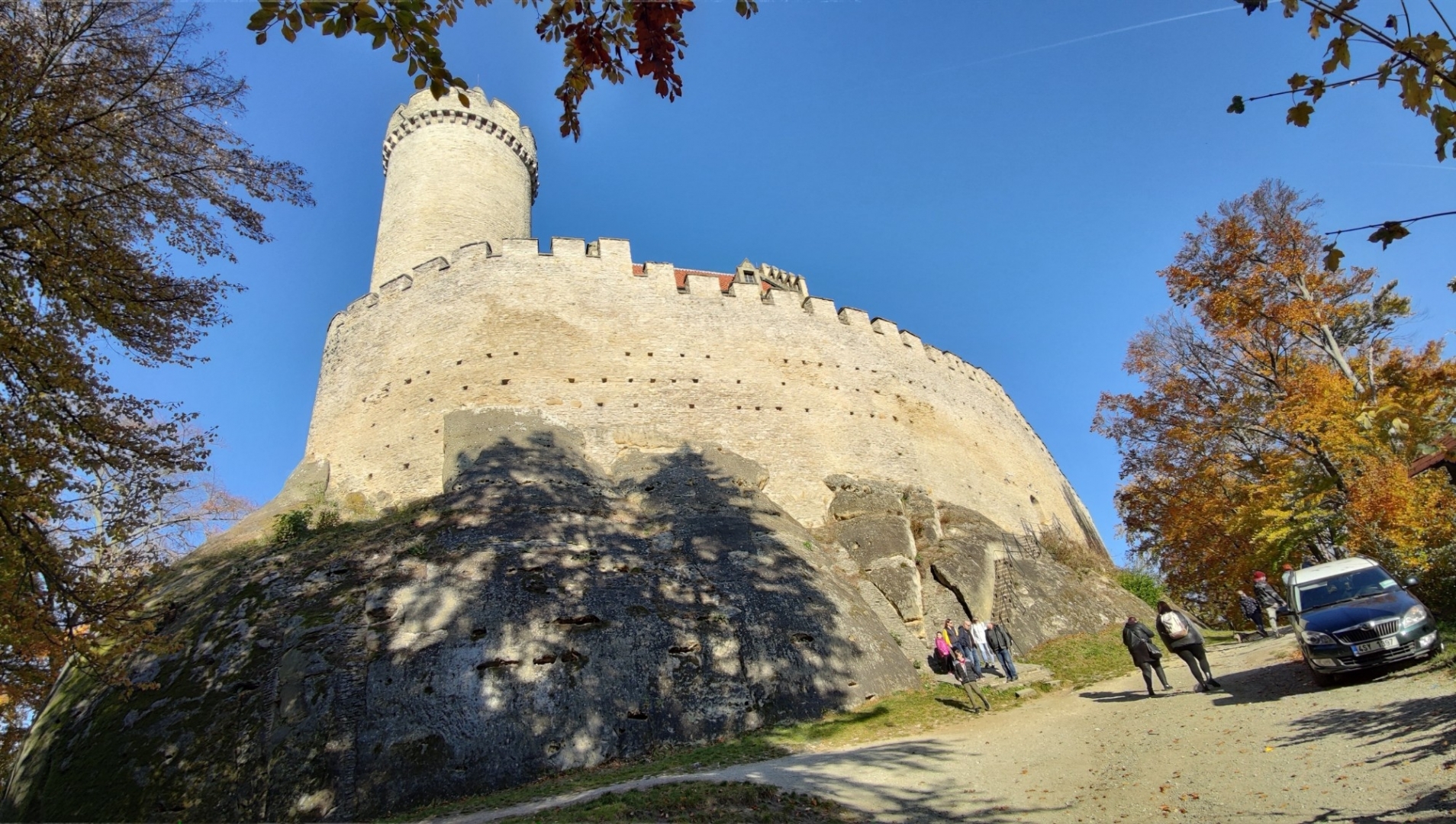 Domlouváme se snadno, kupodivu přes příjemné slunné počasí mají volno. Zbývá mi poslední část cesty dlouhé přes 40 km. Kokořínským dolem jedu do Podhradí, abych serpentinami vystoupal na náhorní plošinu k obci Kokořín. Jelikož budu stejně na kluky čekat, od skočím si k hradu. Věnuji se focení, prohlídce nadvoří a okolí hradu. Výhled z věže si ještě dobře pamatuji. Není to tak dlouho, co jsme zde ukončili letní dovolenou v Máchově kraji, a dnes ho oželím.