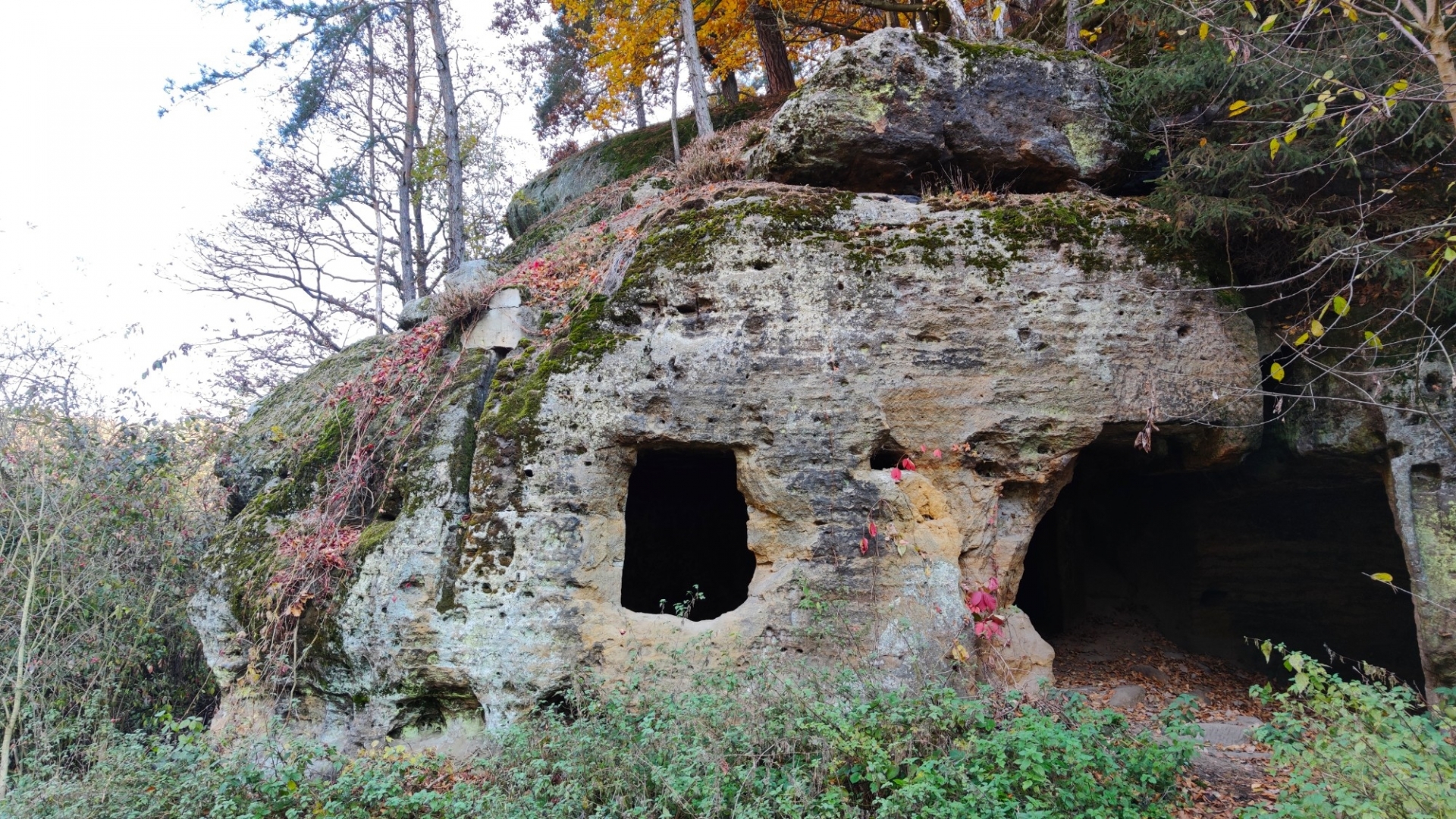 Minu další zajímavou jeskyni Rozbořenku, která vznikla jako skalní byt snad někdy v první polovině 19. století. Místnosti často bývaly využívány trampy, než je státní bezpečnost pomocí TNT vybušniny poškodila. I dnes slouží několik zachovalých k pohodlnému přespání trampů či jiných dálkoplazů.