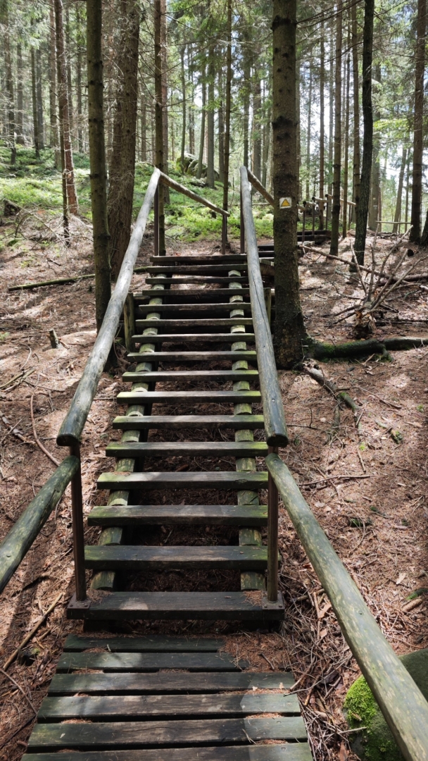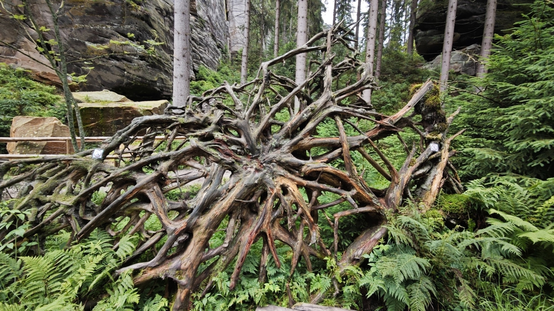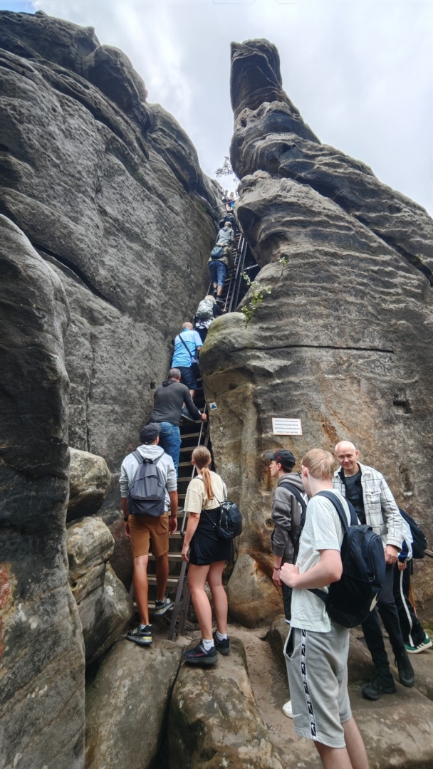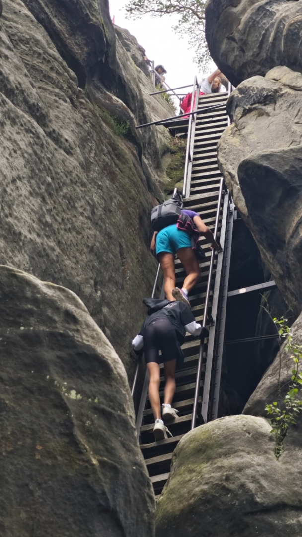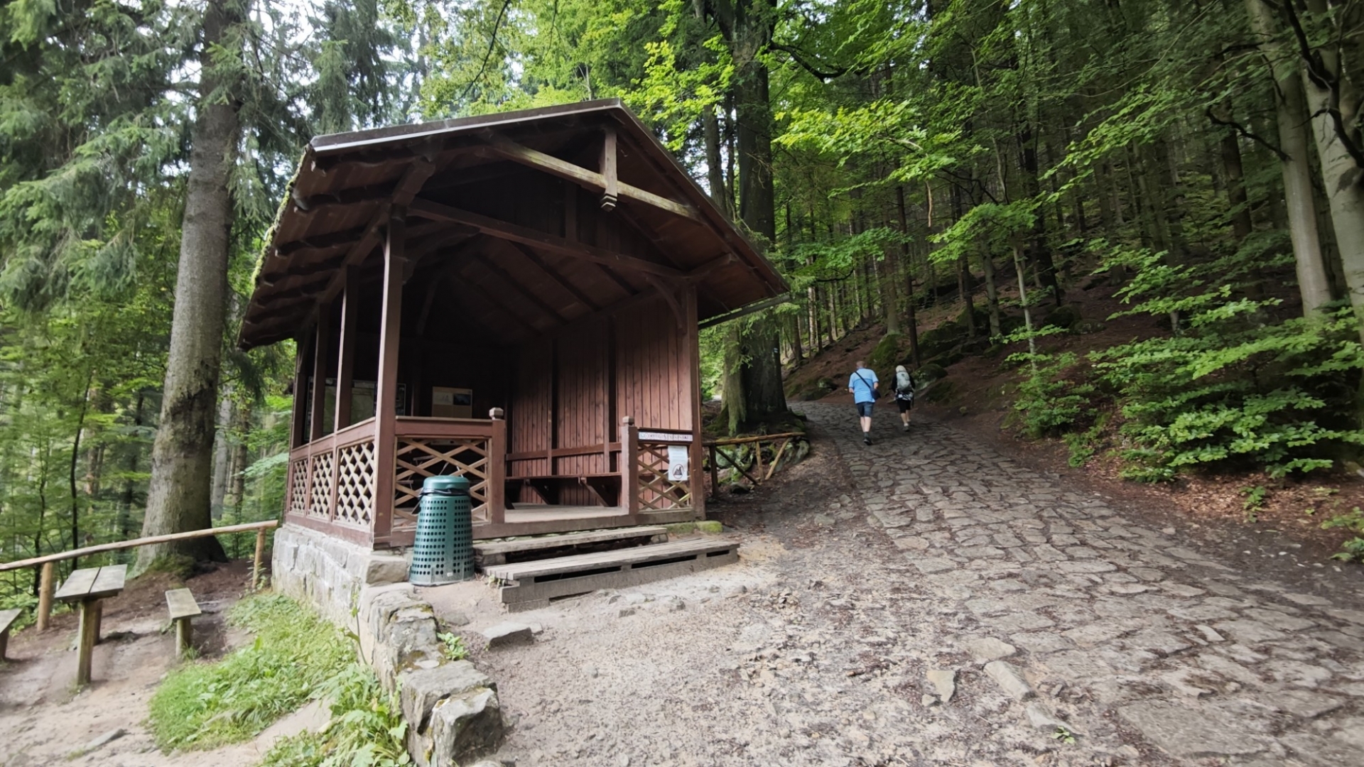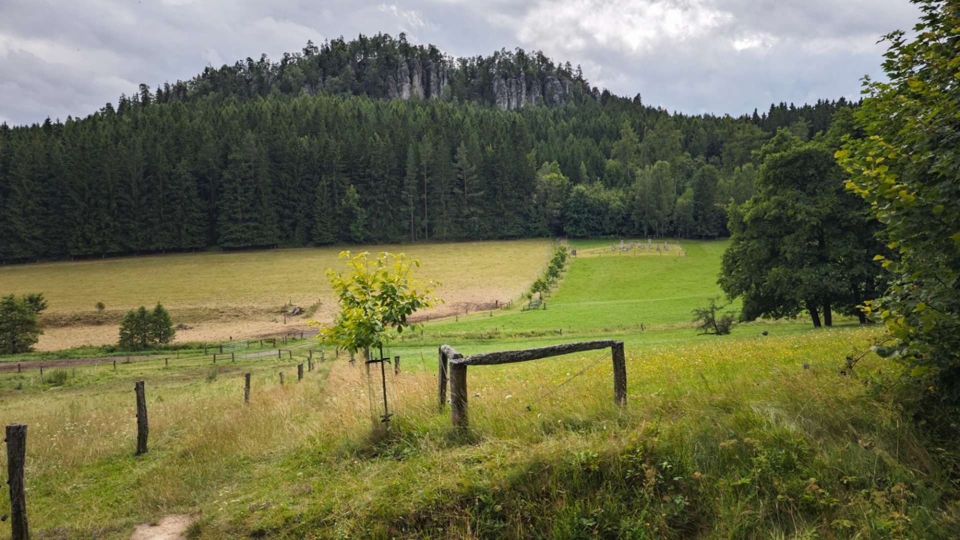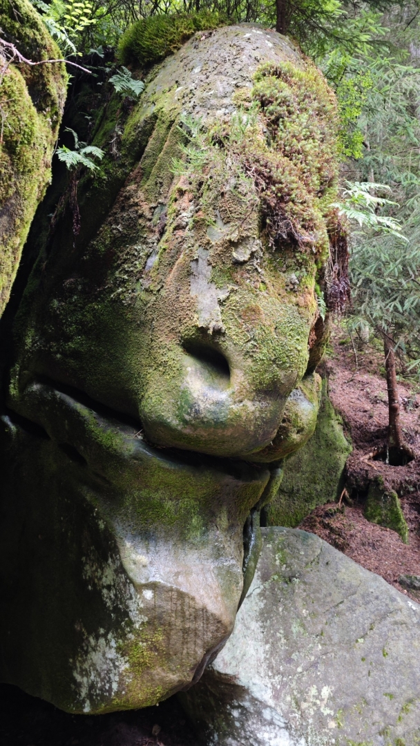 V noci foukal silný vítr, pršelo a já místo spánku poslouchal zvuky z okolí. Zabral jsem až když za otevřeným oknem začaly první ptačí zpěvy. A vzhůru jsem byl za necelé dvě hodiny znovu. Ale jeden den bez spánku se dá vydržet. Po snídani jdeme zjistit, jestli si můžeme rezervovat lístky středeční noční prohlídku Broumovského kláštera. To se daří, takže vyrážíme do Teplických skal. Na rozdíl od celodenně obsazeného parkoviště v Adršpachu, zde snad volno bude, ač mnozí Teplické skály v létě před Adršpašskými upřednostňují. Čekáme, že v nich nebudou davy.