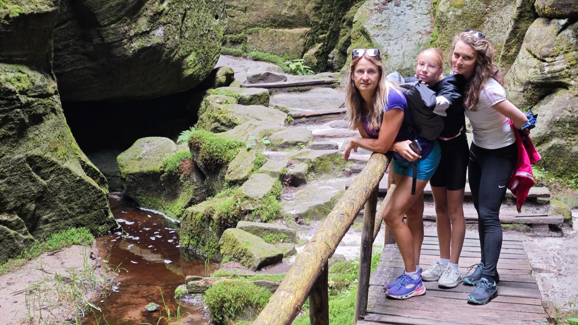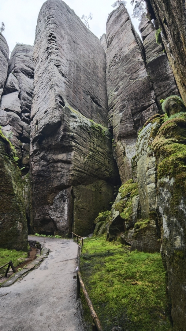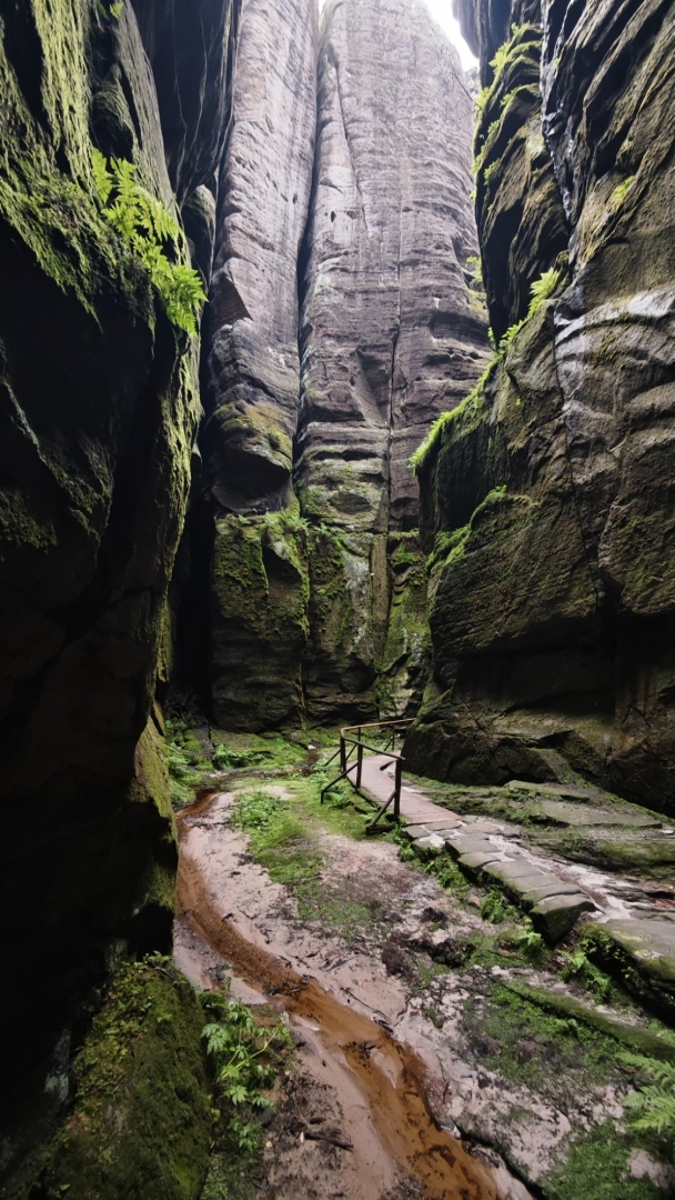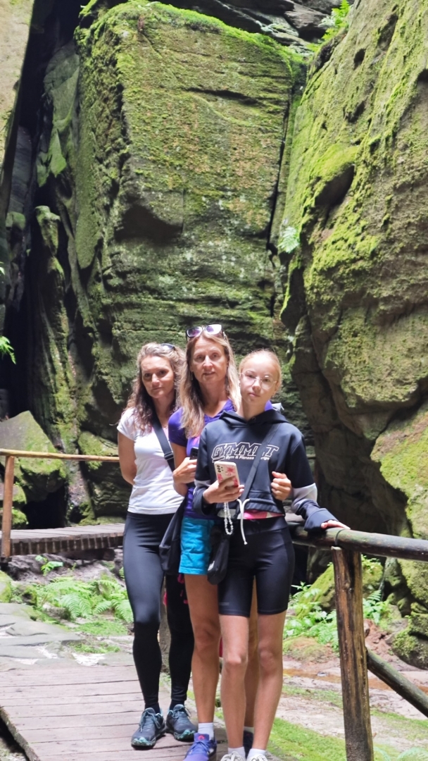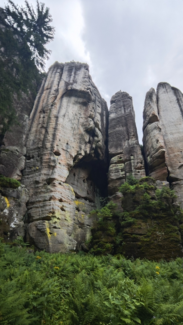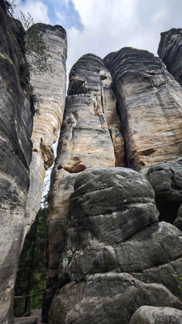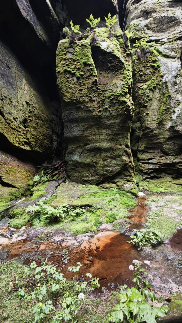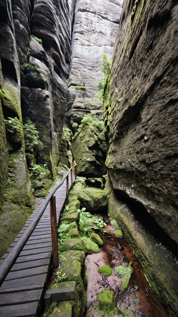 Za Skalní bránou se dostáváme mezi vysoké věže, z nichž většina nese nějaký název. Na vás pak je, abyste ho správně přiřadily. Rozsáhlé skalní město tvoří skalní pískovcové stěny, mezi kterými procházíme úzkými soutěskami. Uvnitř nich je chladno i v nejparnějším létě. Čirá voda potůčku dodává vláhu svěže zeleným mechům a kapradinám. Užíváme si krásný okruh modré značky, jež vede těmi nejhezčími pasážemi skal. Ty tvoří spolu s Adršpašskými skálami jedno z největších ucelených skalních území u nás.
