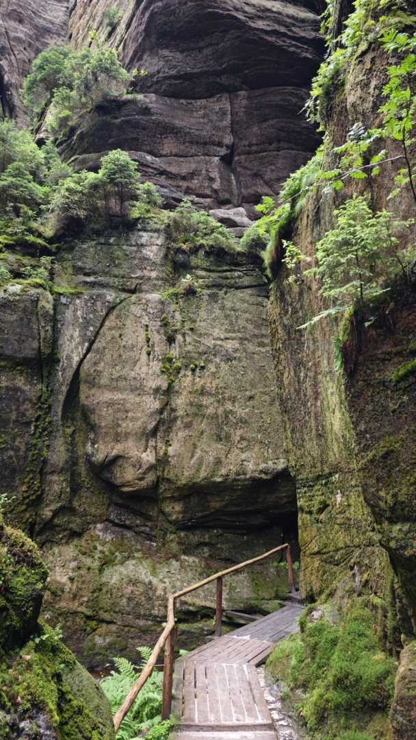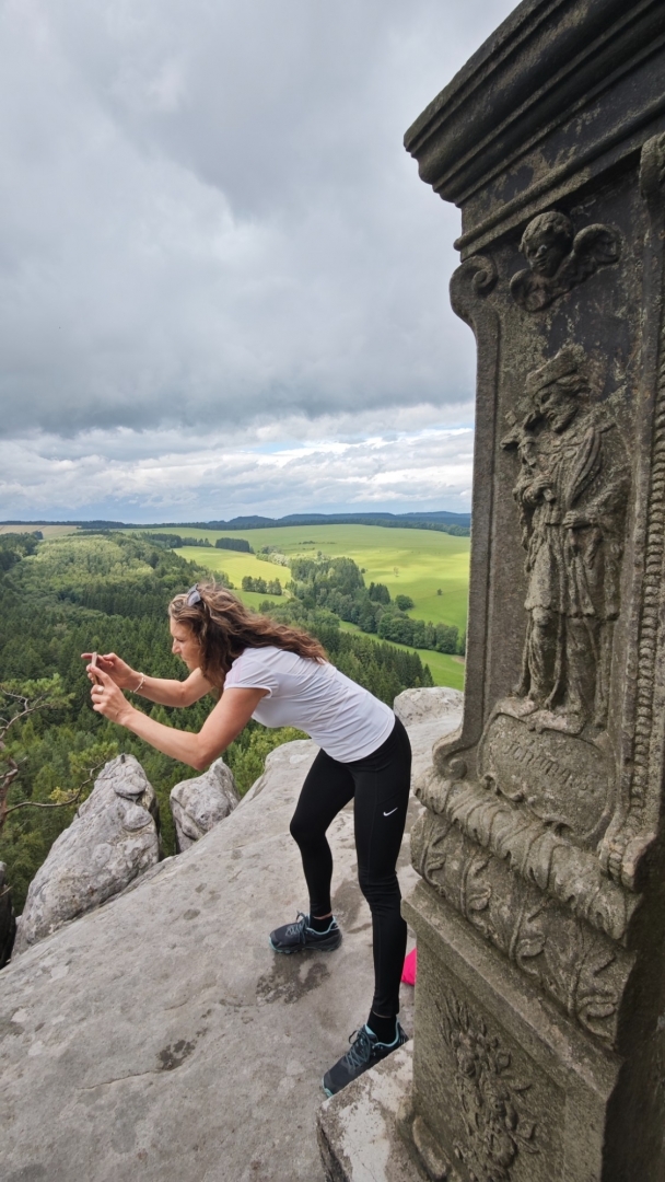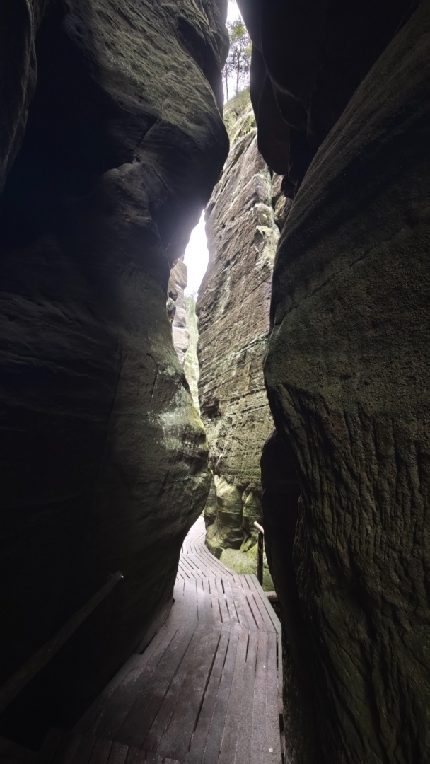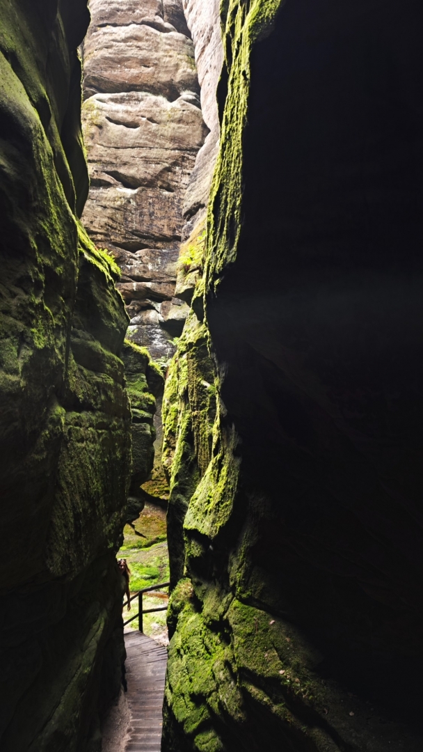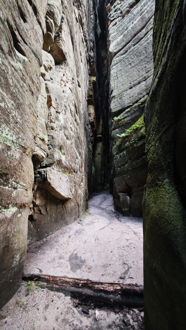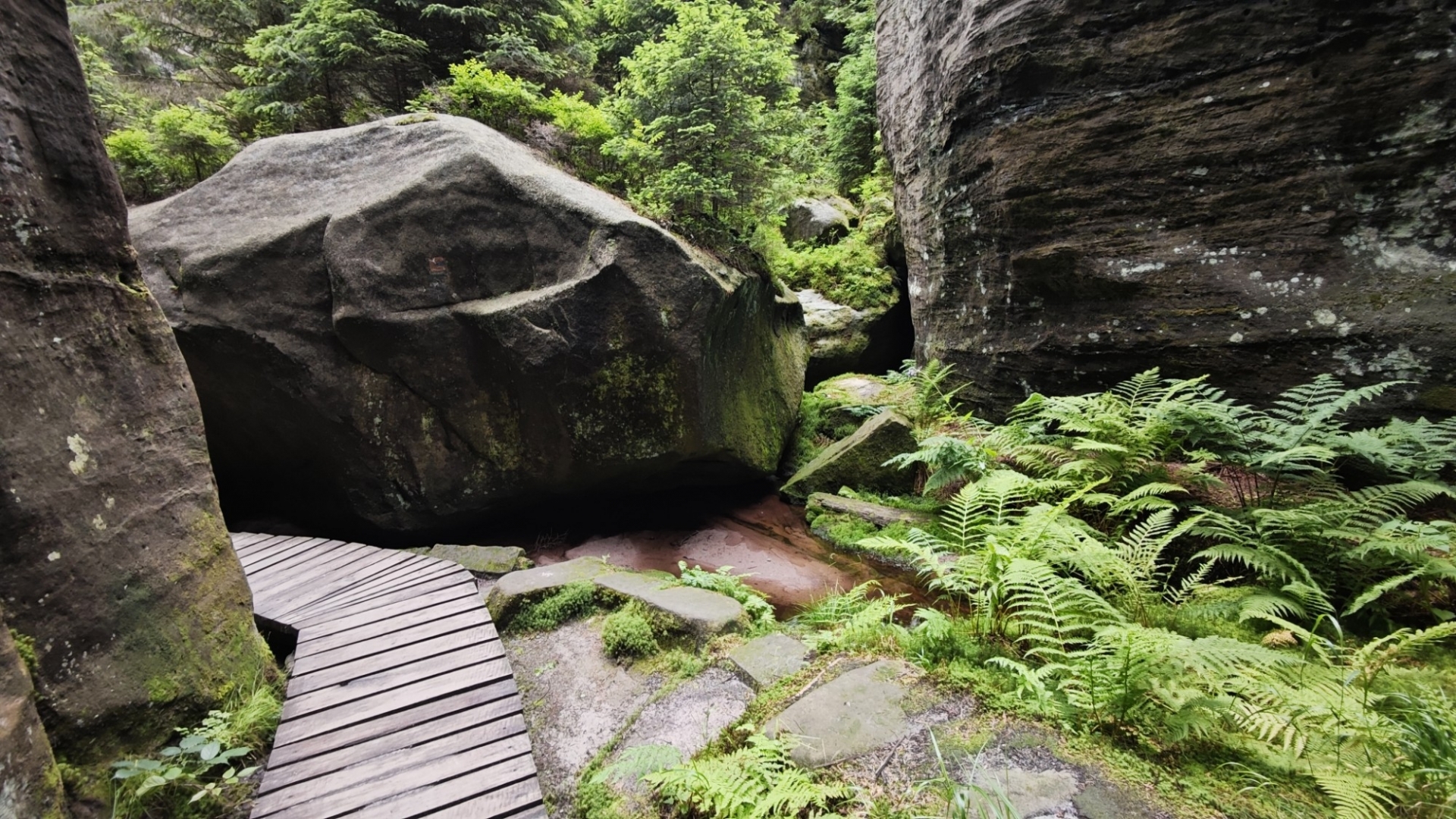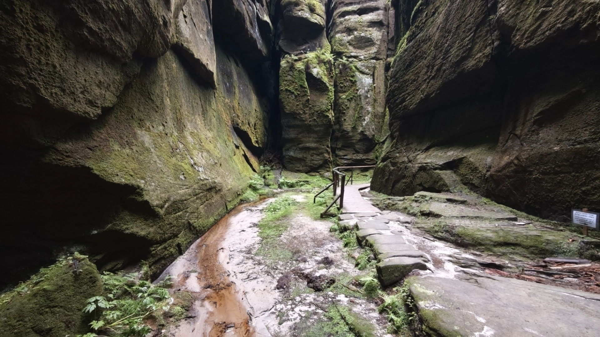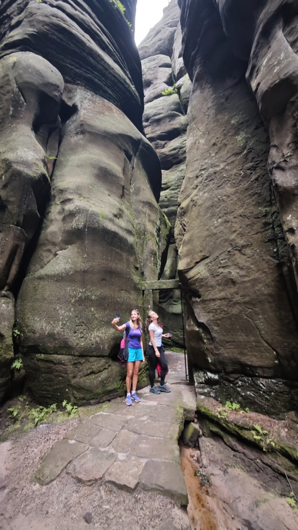Za Skalní bránou se dostáváme mezi vysoké věže, z nichž většina nese nějaký název. Na vás pak je, abyste ho správně přiřadily. Rozsáhlé skalní město tvoří skalní pískovcové stěny, mezi kterými procházíme úzkými soutěskami. Uvnitř nich je chladno i v nejparnějším létě. Čirá voda potůčku dodává vláhu svěže zeleným mechům a kapradinám. Užíváme si krásný okruh modré značky, jež vede těmi nejhezčími pasážemi skal. Ty tvoří spolu s Adršpašskými skálami jedno z největších ucelených skalních území u nás.