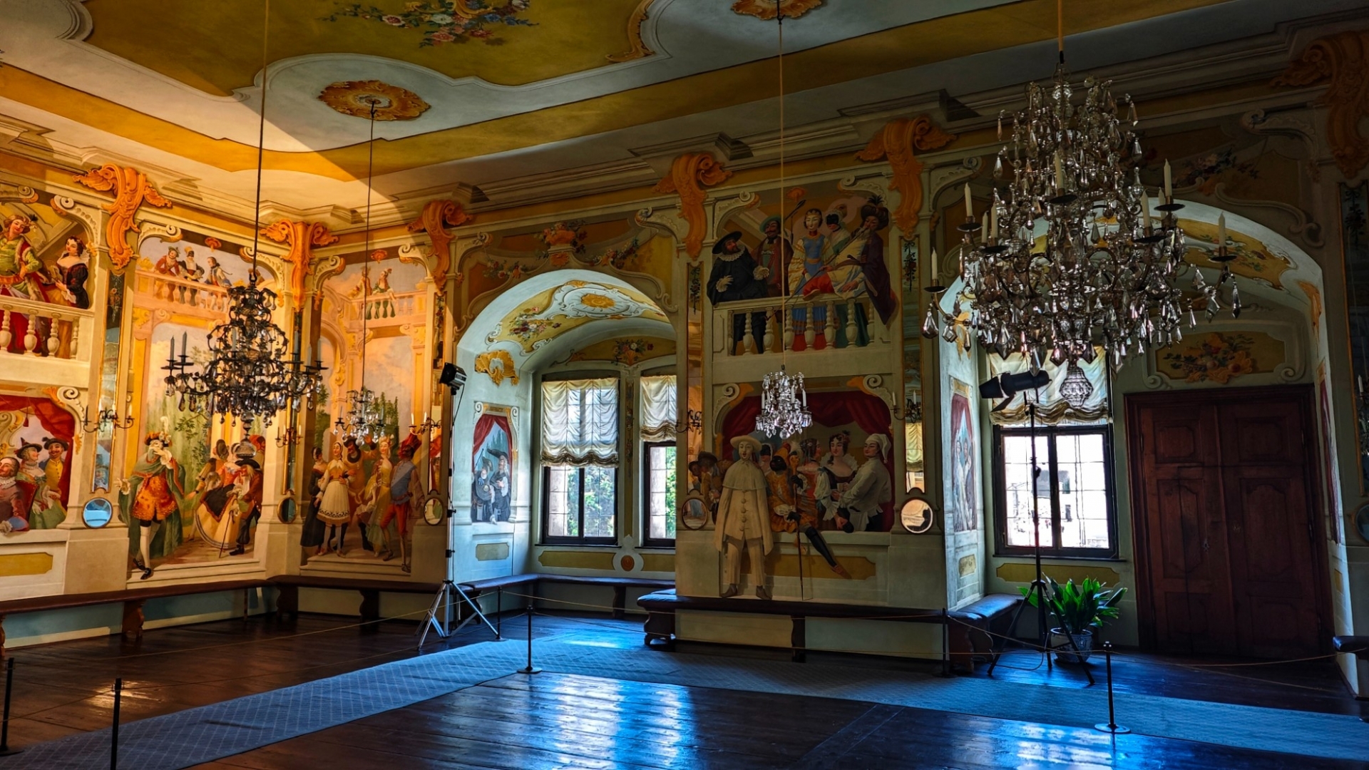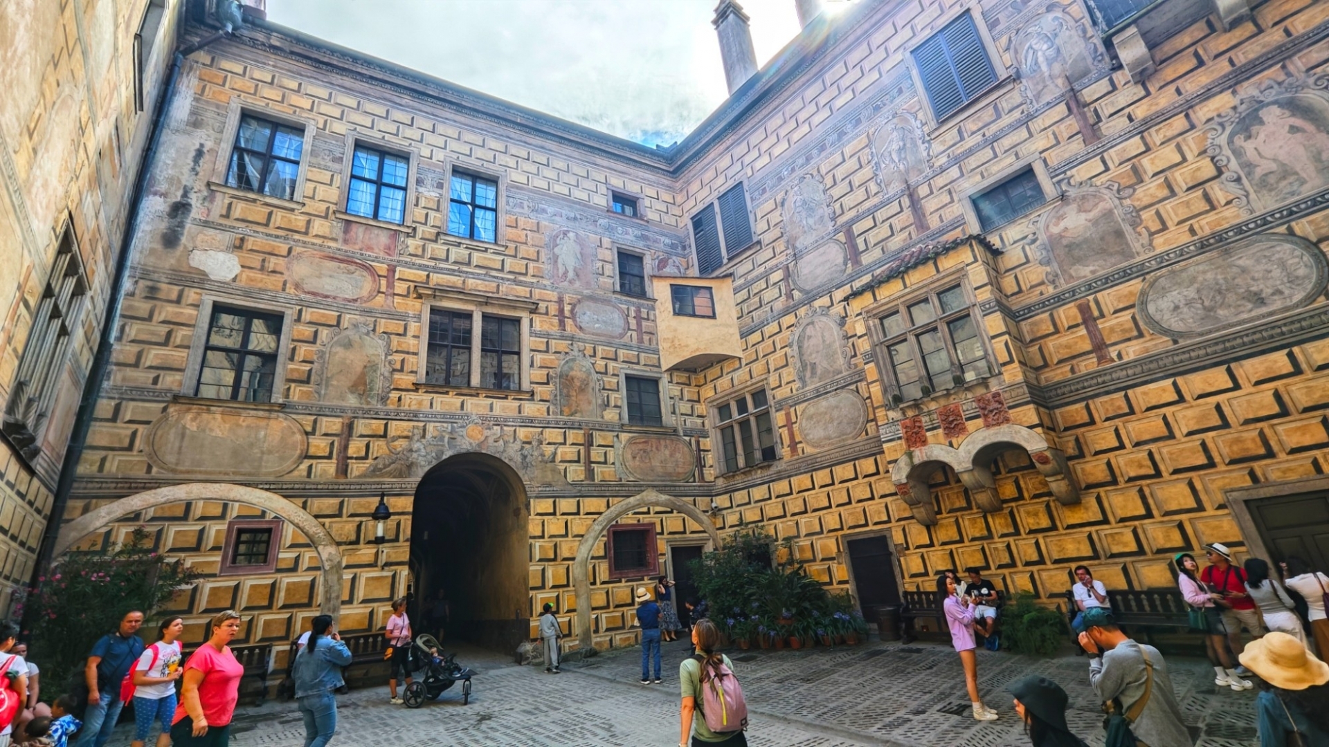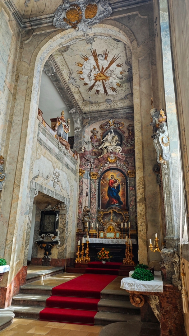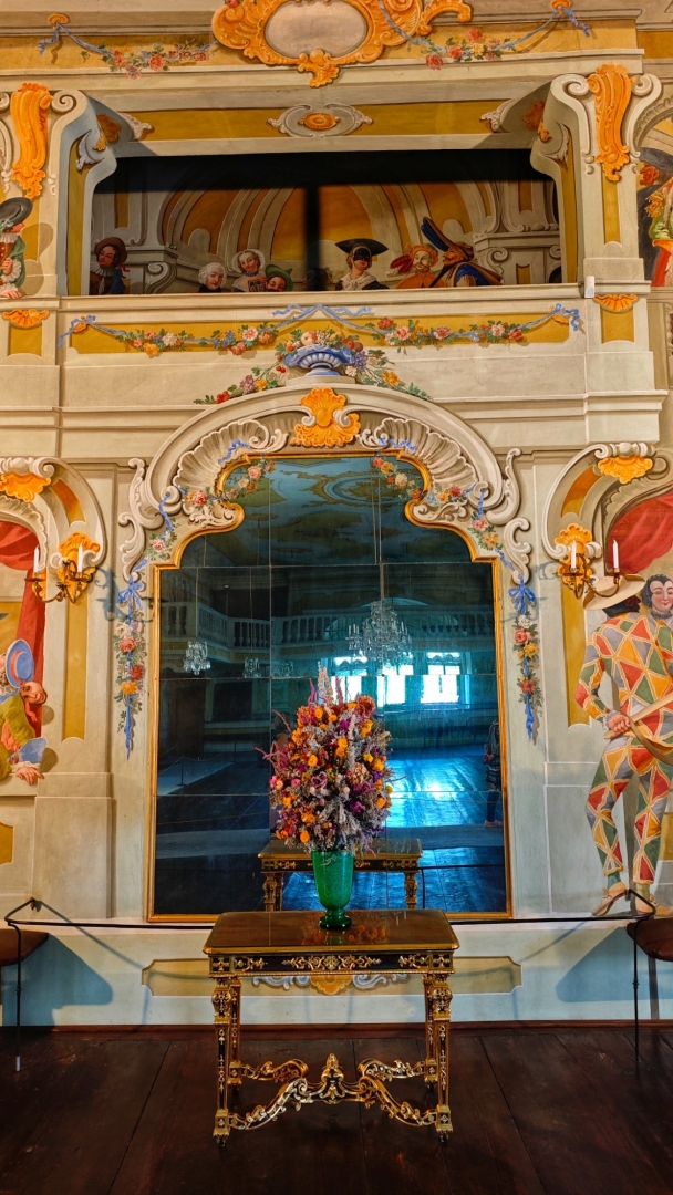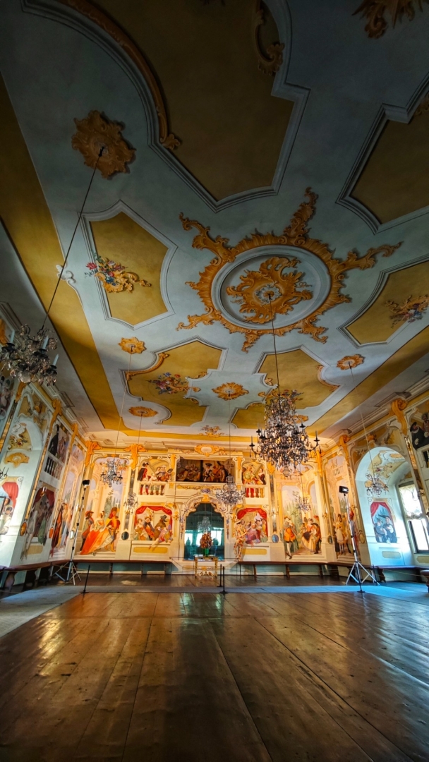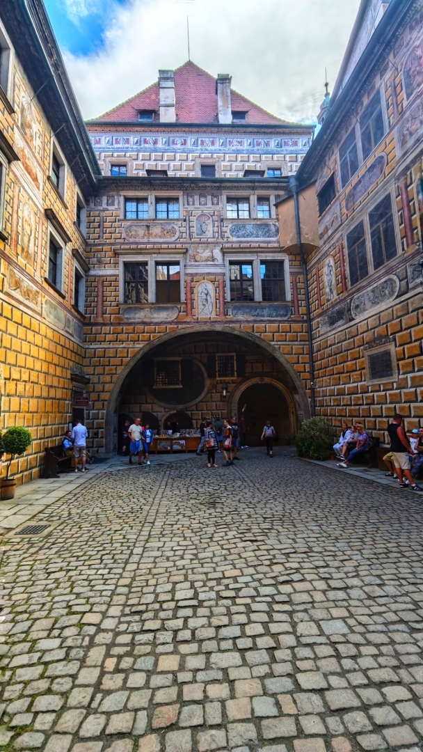 Parkujeme pohodlně a zadarmo u garafitového dolu, v kterém jsme před pár týdny byli. Vystoupáme k zámecké zahradě a projedeme několik nádvoří zámku, než se dostaneme k prodejně lístků. Máme štěstí, za dvacet minut můžeme na prohlídku. Vybrali jsme si základní okruh l. Renesanční a barokní apartmány. Součástí prohlídkové trasy bude i zámecká kaple sv. Jiří a proslulý rokokový Maškarní sál.