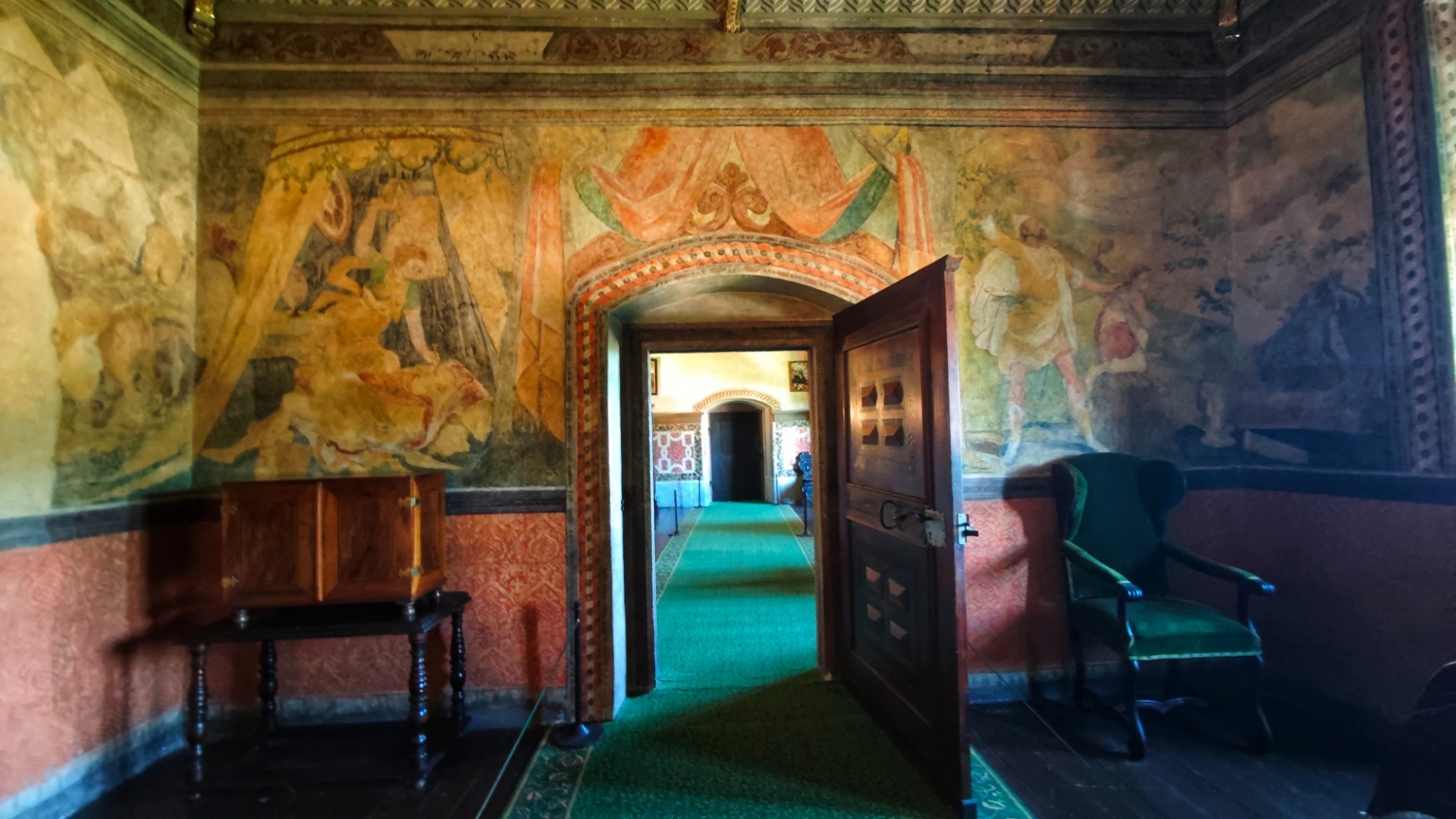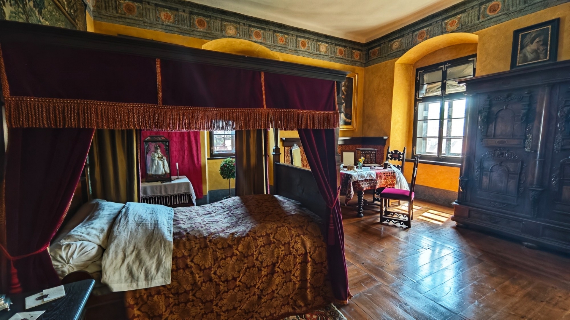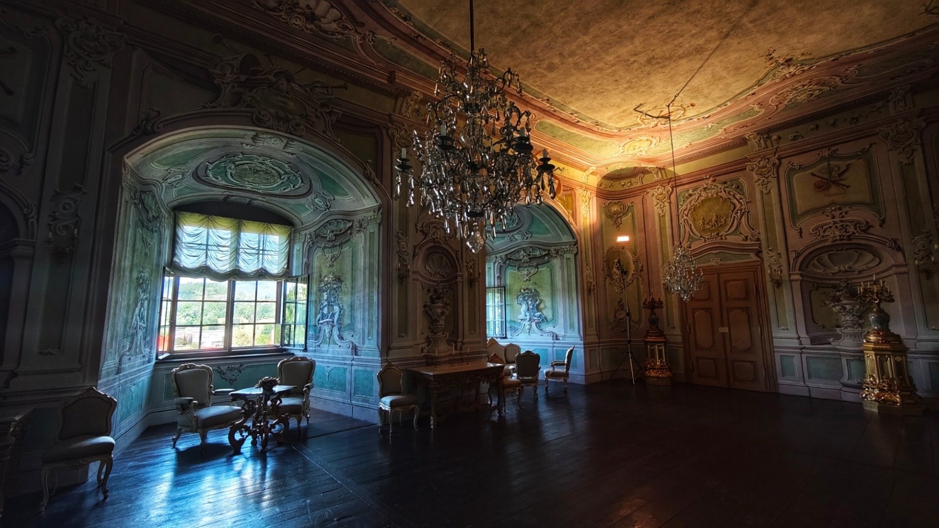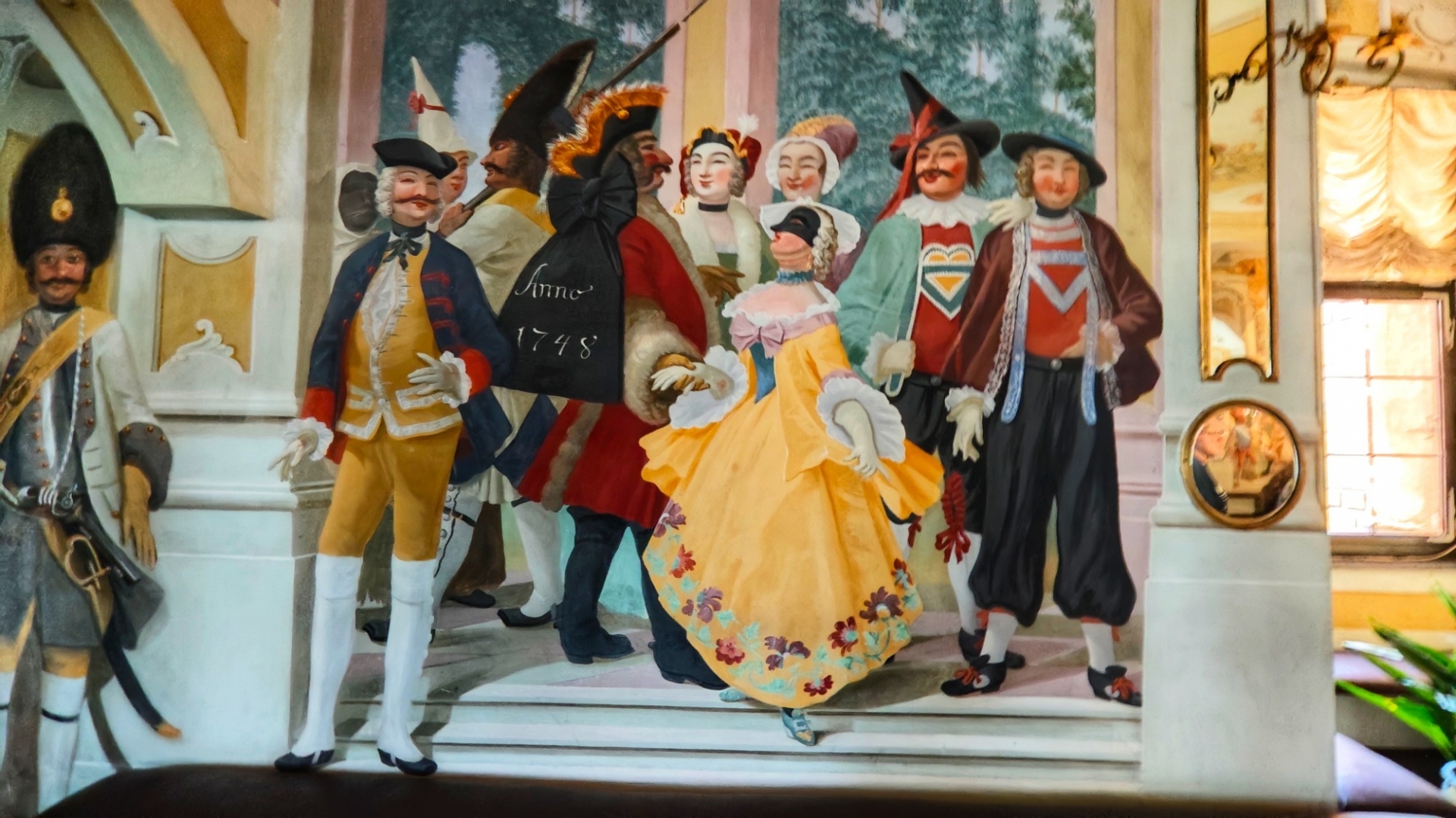 Parkujeme pohodlně a zadarmo u garafitového dolu, v kterém jsme před pár týdny byli. Vystoupáme k zámecké zahradě a projedeme několik nádvoří zámku, než se dostaneme k prodejně lístků. Máme štěstí, za dvacet minut můžeme na prohlídku. Vybrali jsme si základní okruh l. Renesanční a barokní apartmány. Součástí prohlídkové trasy bude i zámecká kaple sv. Jiří a proslulý rokokový Maškarní sál.