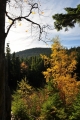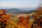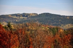 Kamenný vrch (833 m n. m.) výrazně zbarvilo listí buků. K němu směřujeme.