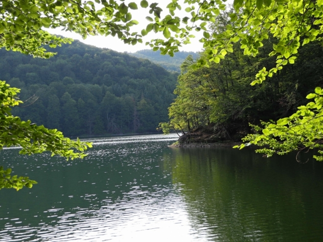 Když turisté odejdou od bufetu, sympatická paní nám zanechá klíčky od chaty, kuchyňku k dispozici a po šesté odjede domů. Večerní procházka kolem krásného jezera přírodního rázu, nás skvěle naladí na zítřejší vandrování Vihorlatem. Čistou vodou se prohání pstruzi duhoví, kteří spolu s večerním vánkem lehce čechrají hladinu, aby efektně rozmazali odraz věkovitě košatých stromů. Klid ruší jen občasné radostné výkřiky od Kostelíka.