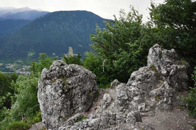 Ústup to neznamená, naopak se bouřím přibližujeme, neboť Šípská Fatra nemá jen jeden vrchol. Smažíme si to po krásném hřebeni a pro rychlost postupu míjíme několik skalních výstupků s rozhledem. Nikdo nechce v bouři zůstat na hřebenu. Za pochodu vyprávím jednomu chalanovi náš loňský zážitek ze Salatína a vidím jak ještě zvyšuje i tak ostré tempo.