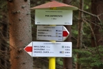 Opouštíme úžasnou, silně skloněnou loučku s dominantními dřevěnkami. U potoka si mácháme unavené nožky a doplníme pitnou vodu. Objevuje se slunce, byť jen na malou chvíli. Zkoumám cestu zpět. Ta povede po vrstevnici lesní cesty a nároćná již nebude. Jen dlouhá, ale co je to sedm, osm kilometrů pro nás dálkoplazy.