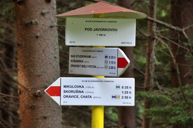 Výhled nás zklame. Stromy přerůstají vrcholovou plošinu a výhled k Oravské přehradě a do polských rovin nás moc neuspokojí. Korunu tomu nasazuje mizerná dohlednost, kterou nezlepšily ani včerejší deštivé přeháňky. Dnešek je tak trochu šumavský.