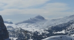 Skupina Sella. Vpravo dole je vidět kus sjezdovky, od rána rozježděné do boulí kvůli tomu, že tam je převaha začátečníků ...