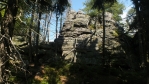 Jediný problém byl, kde zaparkovat. Věřte, že nebylo kde, tak jsou hory navštěvované. Do davů směřujícich na skalní město Hejšovinu-Szczeliniec Wielki se nám nechtělo, tak jsme si vybrali Biale Skaly, jejich jižní část. Ty jsou na druhé straně národního parku, směrem k Orlickým horám. No a taky tam bylo pár keší. Auto jsme doslova vecpali na lesní parkoviště na horském předělu Lisio.