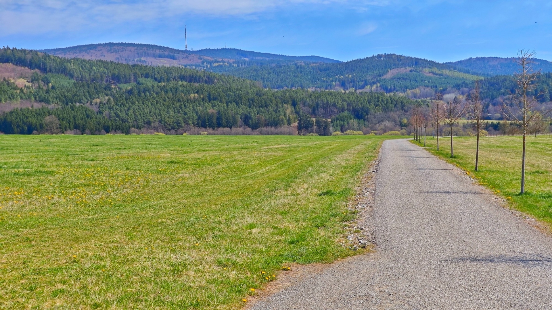 Cyklostezka k Červenému Dvoru, v pozadí Kleť.