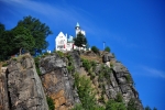 Další vyhlídku - Sněžnickou omylem míjíme, ale vynahradí nám ji Labská stráž s kamenným altánkem a dalším vzdušným pohledem do labského kaňonu.
