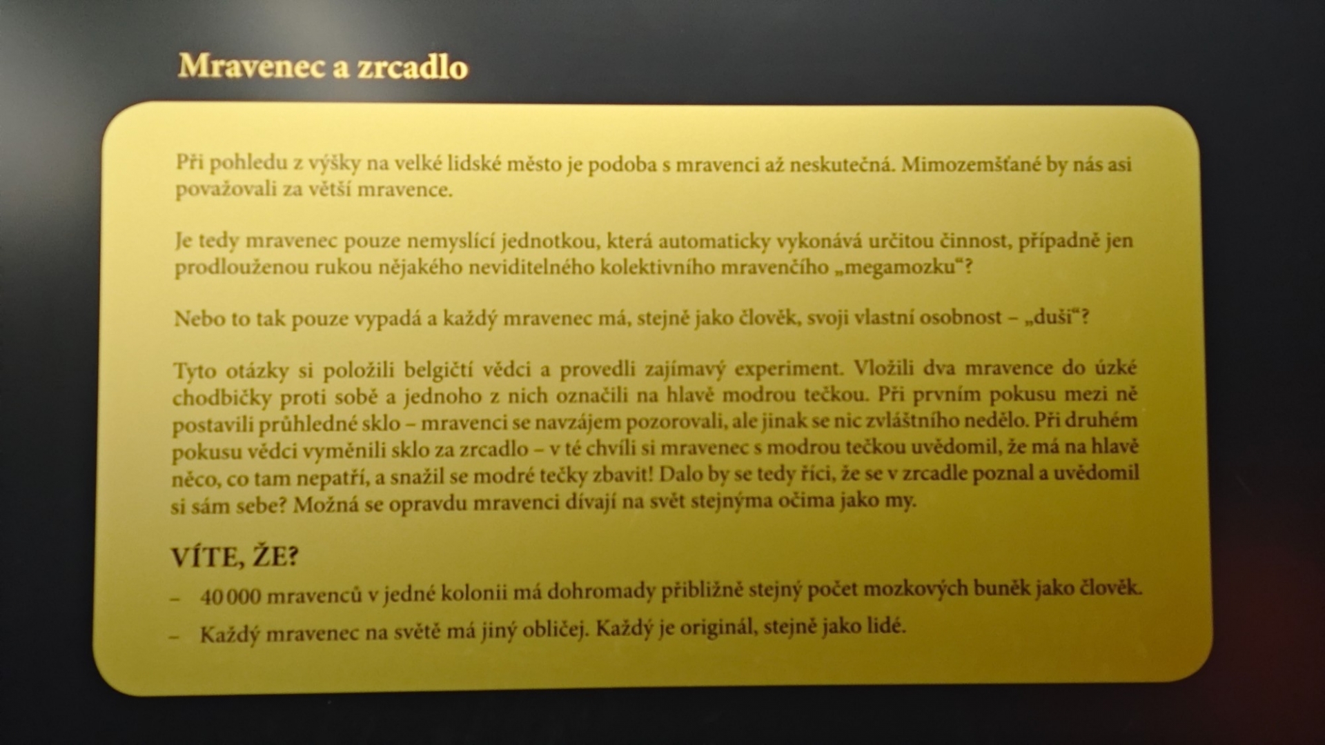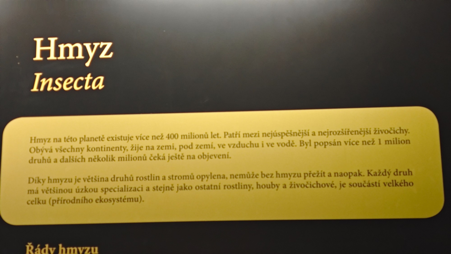 Úvod na výstavu Megabrouci naznačuje, co bude k vidění. Tvůrci obřích modelů měli opravdu na výběr. Wikipedie nám prozradí, že brouci jsou jeden z nejdiverzifikovanějších řádů hmyzu. Zahrnují přes 400 000 popsaných druhů rozčleněných ve více než 160 čeledích. Stále jsou přitom objevovány nové druhy. V České republice byl zaznamenán výskyt asi 7 000 druhů zastupujících asi 110 čeledí.