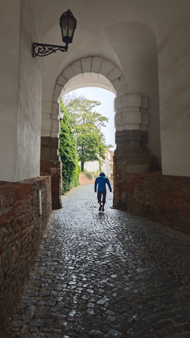 Na jeho prohlídku jdu jen s Jirkou, protože Lenka uvnitř již byla a Romana moc prohlídky hradů a zámků nezajímají. Jdou spolu na Kozí hrádek, odkud je však vyžene hlídač, protože se zde opravuje přístupový chodník a vstup je zakázán. Vylezou alespoň na vyhlídkovou věž kostela sv. Václava, kde je čeká hezký rozhled i přes dnešní mizerné počasí.