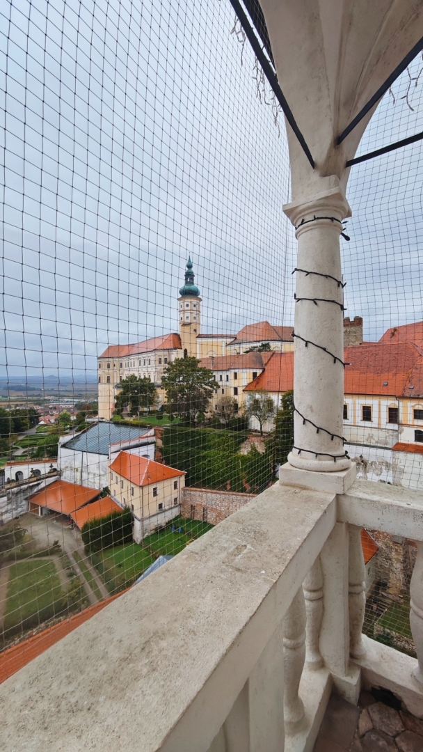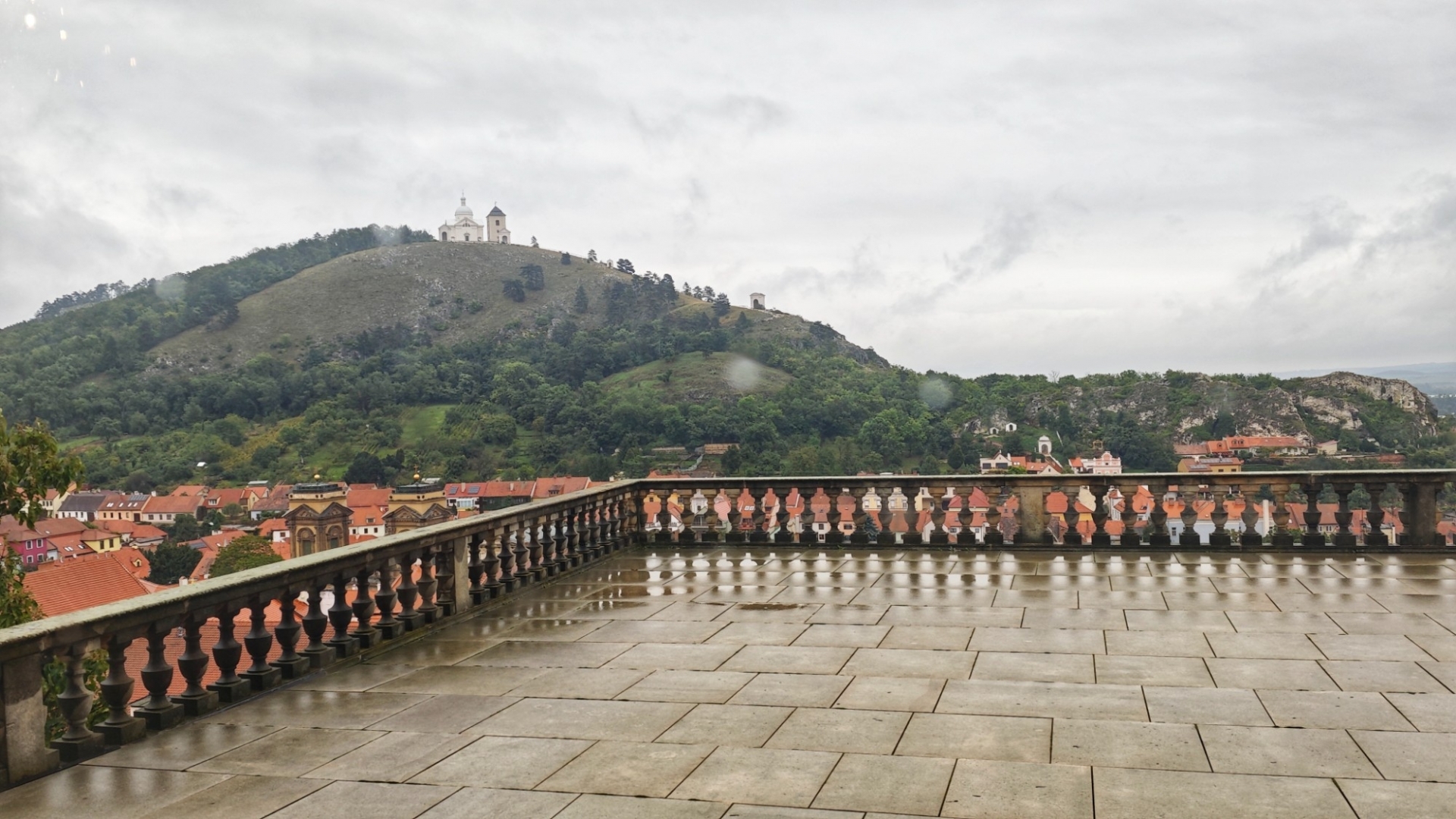 Po prohlídce se mobilem domlouváme na srazu u nedalekého kostela sv. Václava, kde původně stál románský kostel z konce 12. století. Podoba původního kostela není známá. Výstavbu nového přerušil vpád husitských vojsk do města a kostel byl dokončen až v 17. století. Stoupáme na vysokou renesanční věž, odkud budeme mít z ochozu Mikulov jako na dlani. Já si před odjezdem domů kupuji burčák a doufám, že bude, na rozdíl od toho zkaženého u Janova hradu v areálu zámku Lednice, kvalitní.