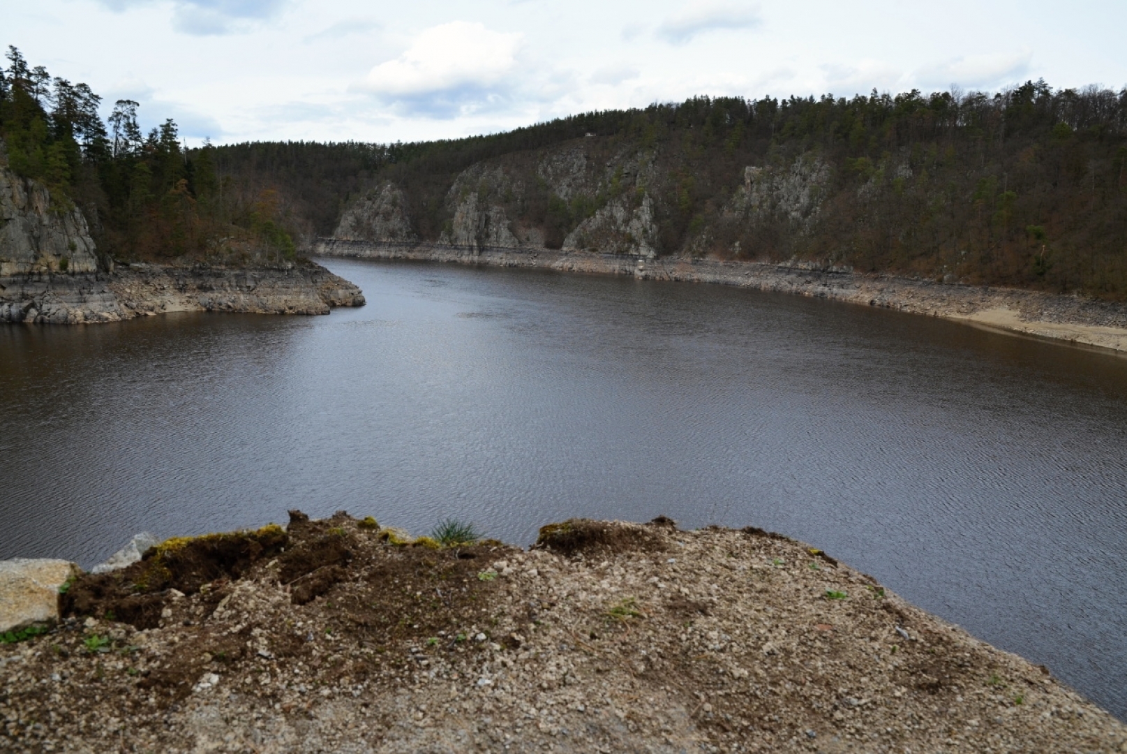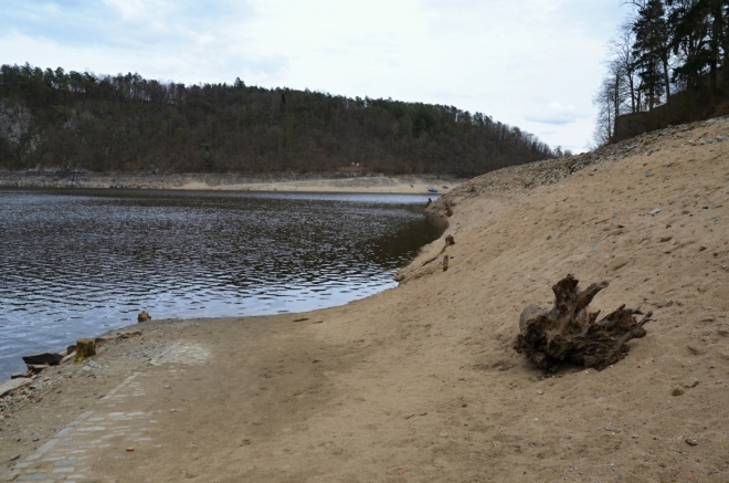 Konečně se dostáváme na dohled k Orlické přehradě. Je opravdu dost upuštěná a nabízí díky tomu nové pohledy a možnosti. Mnohá místa, která by stála za návštěvu, tak úplně neznáme, a vybrali jsme si namátkově víceméně ona profláknutá.
