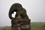 Cestu dolů upravujeme i my s Lukášem. Dřou ho nové trekové boty a tak 12 km dlouhou cestu na Kladské sedlo nezvládne. I takhle kňučí jako raněný pes. U zbytků domu si pro štěstí saháme na chobot kamennému slůněti a pouštíme se zpět k Stříbrnickému sedlu. S Lukym jdeme kousek po hranici, kde mají zelenou Poláci. Stezka tu je trochu podmáčená, ale zase nemusíme klouzat po kamenech. Od sedla sestupujeme už spořádaně serpentinou k turistické chatě Návrší. K ní šlo ráno dojet, ušetřili bychom 250 metrový prudký sestup do Stříbrnice.