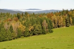 Nad Kuklovem jsou podzimně zabarvené vrchy Šibeníku (787 m n. m.)a Vlčího kopce (767 m n. m.), které patří do CHKO Blanský les.