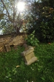 Opravená Boží muka se sv. Hubertem hlídá jasné oko (vlevo na zdi).
