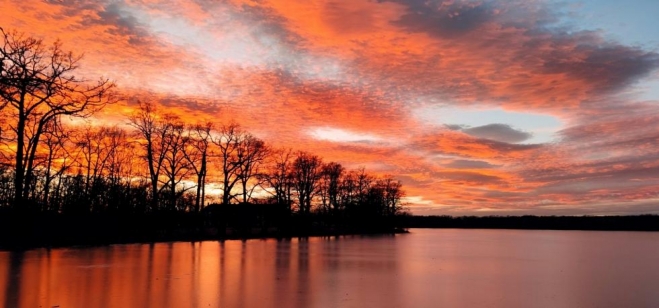 Fotografové rádi čekají na večerní světlo, které občas dělá divy. Jiní pak říkají, že jde o kýčovité fotky a nechtějí s nimi mít nic společného. Pokud však fotíte přírodu, je osvětlení krajiny velmi důležité pro dobrý výsledek. Červánky vyniknou tehdy, když slunce zdola osvítí mraky. Tenhle barevný zázrak trvá jen pár desítek minut. Na Munickém rybníku ještě ve stínu stromů neroztál všechen led a tak odraz na rozmrzá jí cílem vodní hladině byl obzvlášť působivý.