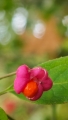 Brslen evropský jsem nedávno fotil na vrcholu Vápenné v Malých Karpatech. Krásný pohled na tento opadavý keř, jenž u nás je původním druhem, se mi naskytla také nedaleko Knížecího rybníka. Růžová tobolka po dozrání pukla a odhalila oranžová semena obalená míškem. Ač pro nás jsou plody brslenu jedovaté, stály se oblíbenou pochoutkou pro ptáky, kteří tak pomáhají šířit semena. Brslen evropský kvete od května do června nenápadnými zelenožlutými květy a na podzim se jeho listy zbarvují do karmínově červených odstínů.