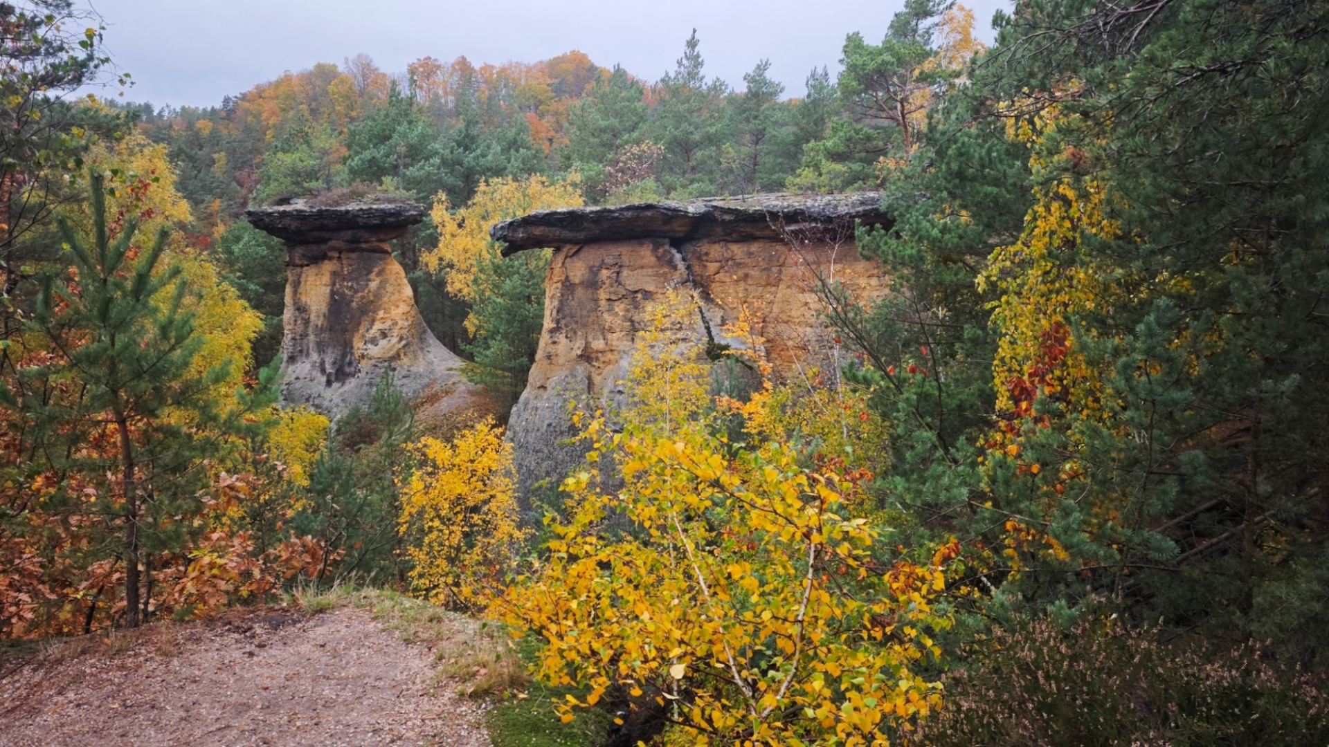 Konec měsíce přinesl chladné a deštivé počasí, s kterým jsme v Kokořínském dole po tři dny bojovali. Odměnou nám byly pohledy na úžasně barevnou podzimní přírodu. Důl Kočičiny nebylo snadné projít, ale skalní divadlo, kterým jsme prošli, stálo za trochu námahy a zablácené boty.