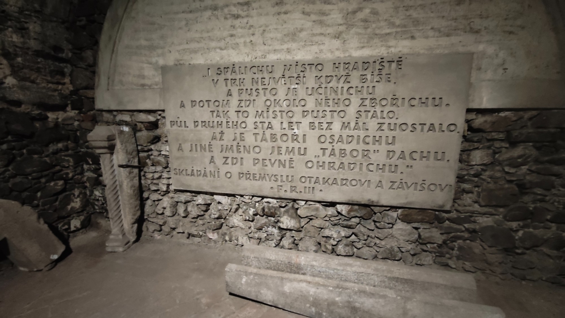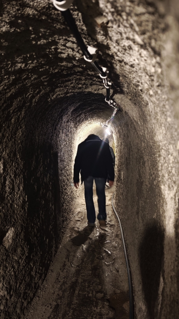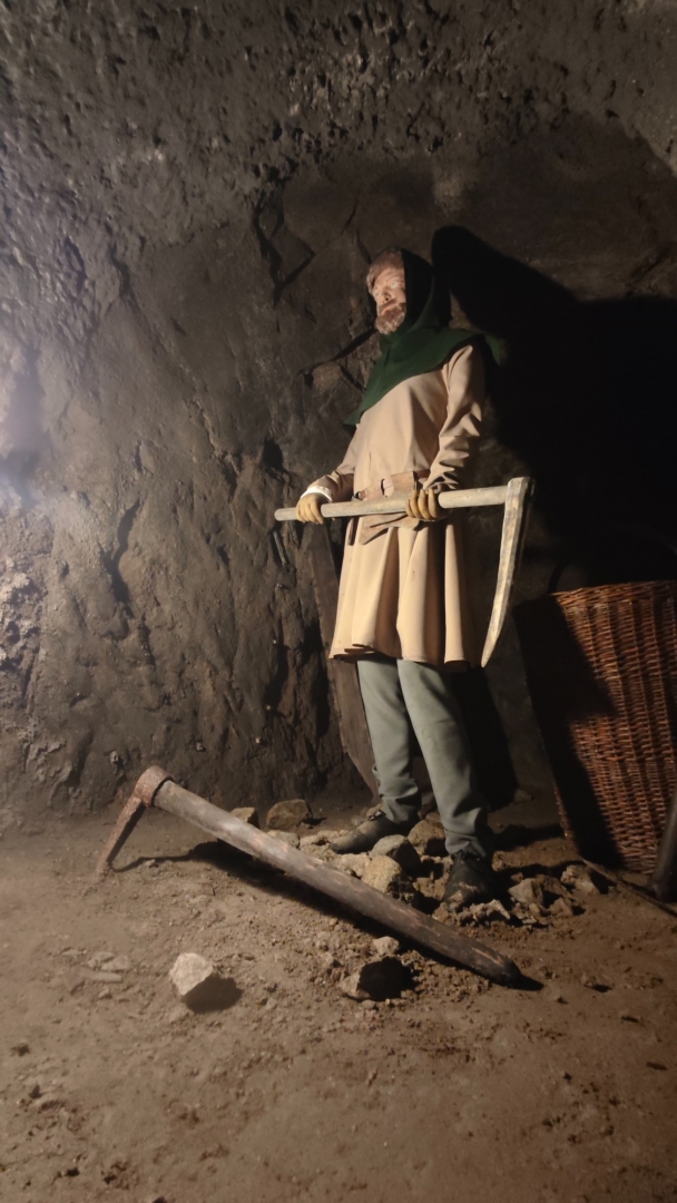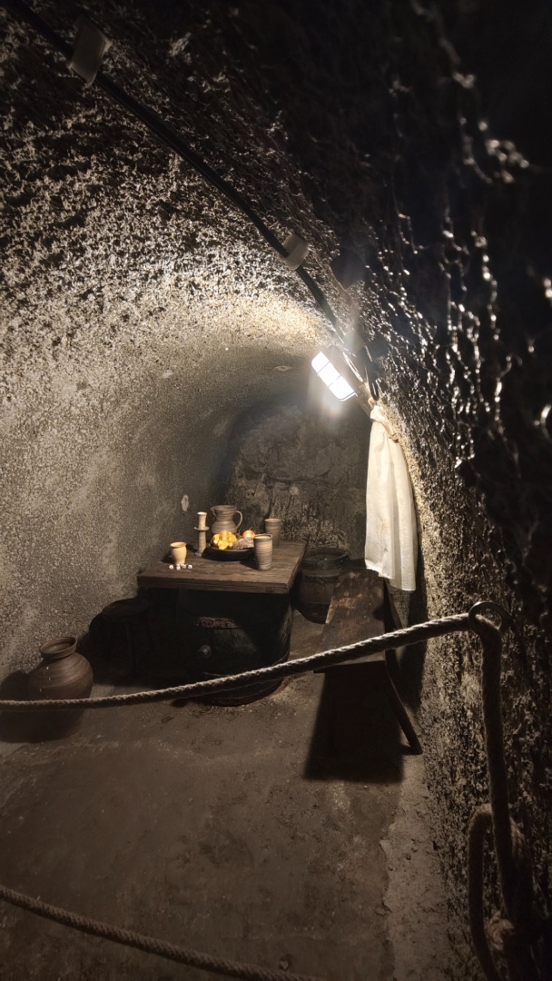 V půl jedenácté vstupujeme do středověkého podzemí. Jednotlivé sklepní místnosti jsou dost velké, abychom netrpěli klaustrofobií. S ní má zkušenost Láďa, ale vydává se překonat své démony s námi. Mně osobně vstup do podzemí, ať jsou to uměle vytesané chodby a sály či jeskynní dómy, baví a pocit strachu nemívám.