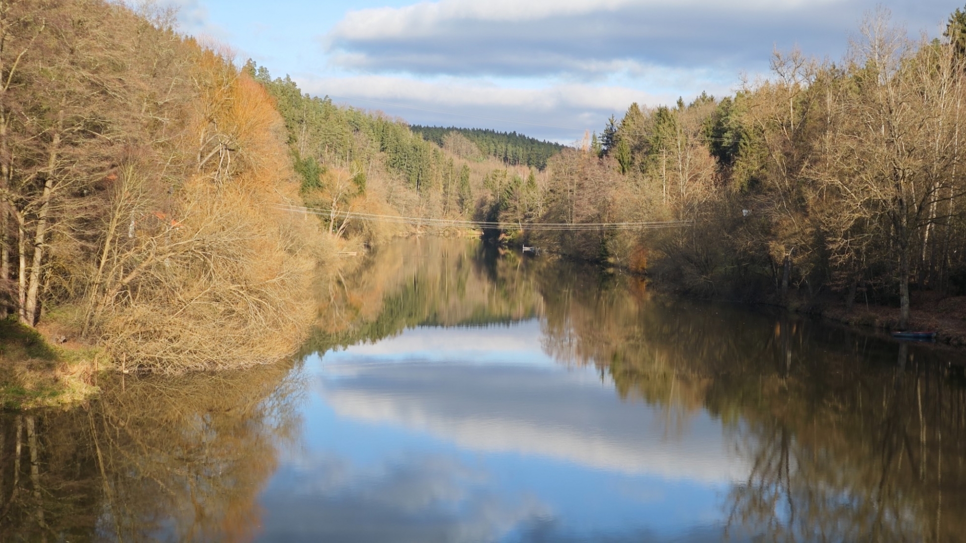 Naši plánovanou pěší trasu musíme pozměnit, když se zakecáme a odbočíme k Lužnici příliš brzy. Dostaneme se na stezku nad skalami a veškeré pokusy sejít dolů skončí nezdarem. Bylo by to příliš riskantní a náročné. Navíc se od staršího domorodce dozvíme, že cesta je hodně zarostlá a on tam jezdí jen po vodě na paddleboardu. Nevadí, stezka ve svahu stráně nad řekou vede sympaticky. Z dubů a buků již opadalo všechno listí a tak občas zahlédneme i vodu v údolí koryta řeky. Zajdeme k výhledu ze skalního ostrohu. Nedaleko si parta lidí udělala oheň a zřejmě cosi popíjí. Jitká má chuť k nim zavítat, ale dny jsou krátké a my ani nemáme co jim nabídnout. Snad jen trochu čaje, co zbyl v termosce Hanky.