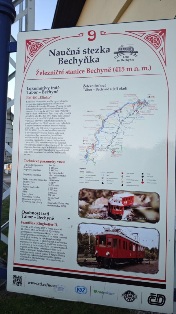 Domlouváme se, že bychom si někdy trať mezi Bechyní a Táborem rádi vláčkem projeli. Když v roce 1889 vídeňské ministerstvo železnic zamítlo projekt plánované železnice z Vodňan přes Týn nad Vltavou, Bechyni, Tábor a Vlašim do Kutné Hory, vzniklo družstvo, které neúspěšně prosazovalo alespoň část trasy, z Vodňan do Tábora. Ale teprve nové Družstvo bechyňské dráhy, v jehož čele stál bechyňský starosta Hynek Daniel, prosadilo alespoň úsek mezi Táborem a Bechyní. Pravidelný provoz na "Bechyňce" byl slavnostně zahájen 21. června 1903. Šlo o první elektrifikovanou trať ve střední Evropě. Trať v Bechyni původně končila na levém břehu Lužnice a teprve po výstavbě nového bechyňského mostu "Duha" v roce 1928, byla prodloužena do města. Délka trati se tak prodloužila o jeden kilometr na celkovou délku 24 km.