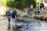 Znovu se dívám do vytištěné mapy. Jsme na soutoku Roklanského potoka s Rokytkou. Za ním je vidět kosodřevinu, která ukrývá další dvě jezírka rozsáhlé Roklanské slatě. K nim by ale byl přístup přes kleč dost problematický, a tak si na zajímavé a ceněné fotky musíme nechat zajít chuť. Místo toho brodíme na druhou stranu potoka. Zanedlouho od hranic přijíždí na kolech dva Němci a nejdříve nevěřícně kroutí hlavami. Přejet se to nedá. Nakonec také Roklanský potok přebrodí.