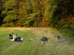 Přicházel večer a chtěli jsme najít, kde budeme spát. Dle mapy jsme si našli jedno místo za Henfenfeldem. Přejeli jsme tedy po rovině řeku a na konci Henfenfeldu zabočili vlevo. Vystoupali jsme si kus a podívali se do jednoho lesa. Bylo tam dost mravenců, a tak jsme radši šli na posekanou louku.