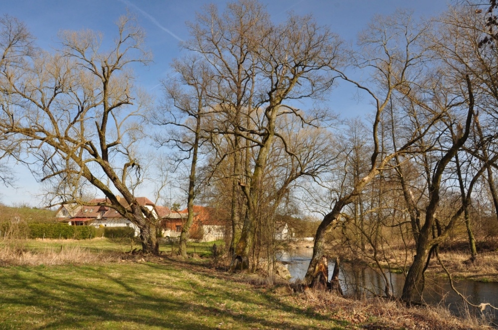 Ostré slunce nám sice ubralo hodně sil. Přesto se rozhodujeme pokračovat do Smetanovy Lhoty a odtud podle Lomnice zpět do Ostrovce. Druhou, neméně zajímavou možností by bylo dokončit okruh po žluté naučné stezce lesy přes Rybníček k RS Avia.