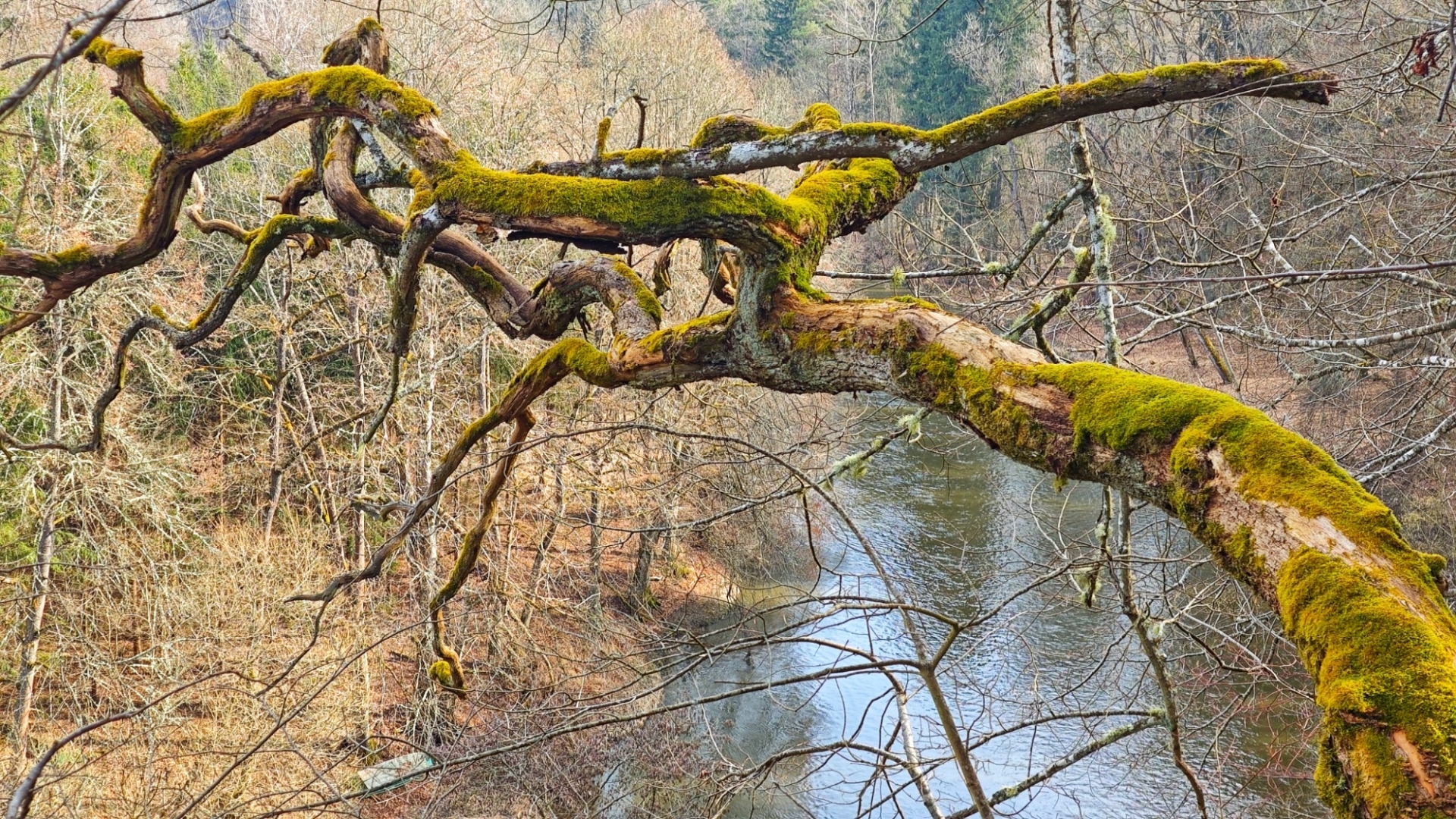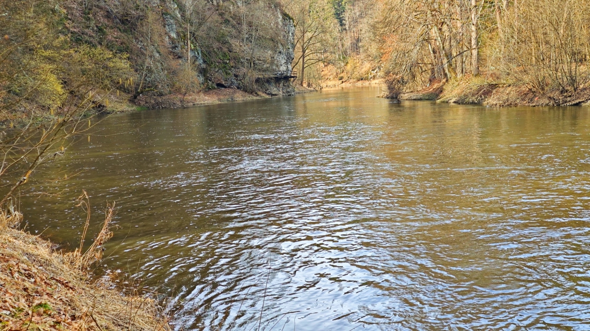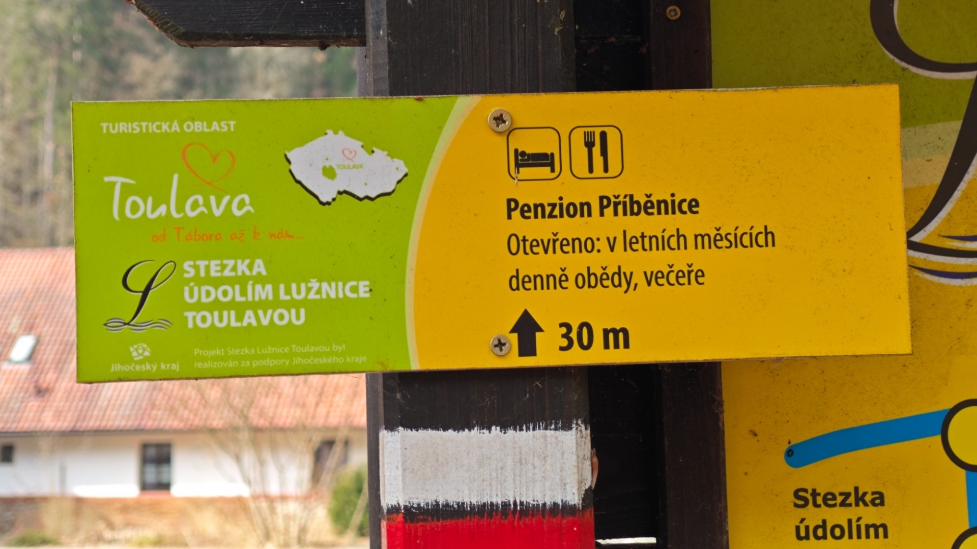 Kolem Lužnice jdeme k chatové osadě, kde rozkvetly desítky sněženek. Plakát na stromů nás upozorňuje, že zde byla spatřena neznámá šelma, zřejmě puma. Tahle zpráva ovšem médii proběhla již někdy počátkem zimy. Unaveni jdeme zpět k autu do Nuzic. Asi šestikilometrový okruh nebyl až tak snadný, jak se zprvu zdálo.