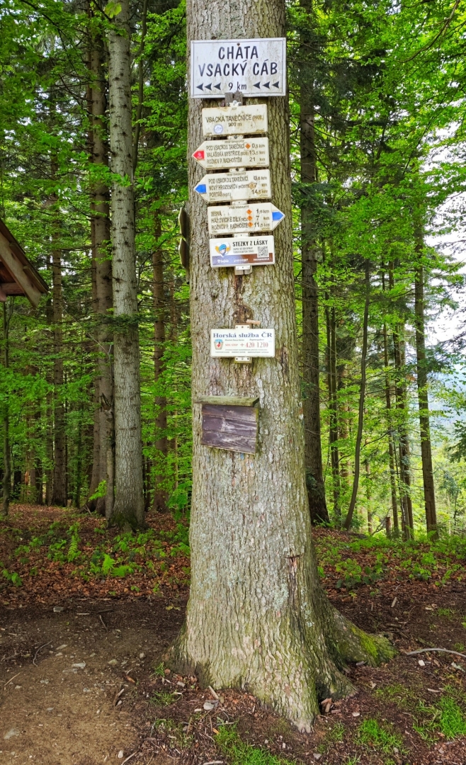 Druhý den se jako tradičně dělíme na dvě dvojice. Roman vede Marii na rozhlednu Miloňová a pak na jedinou tisícovku Vsetínských vrchů, Vysokou (1 024 m n. m.). Odtud projdou na Třeštík a kolem horského hotelu Sůkenická si ještě přidají přes rozhlednu Čerťák kus červené značky, jež vede do Javorníků. Čeká je kolem 30 km.