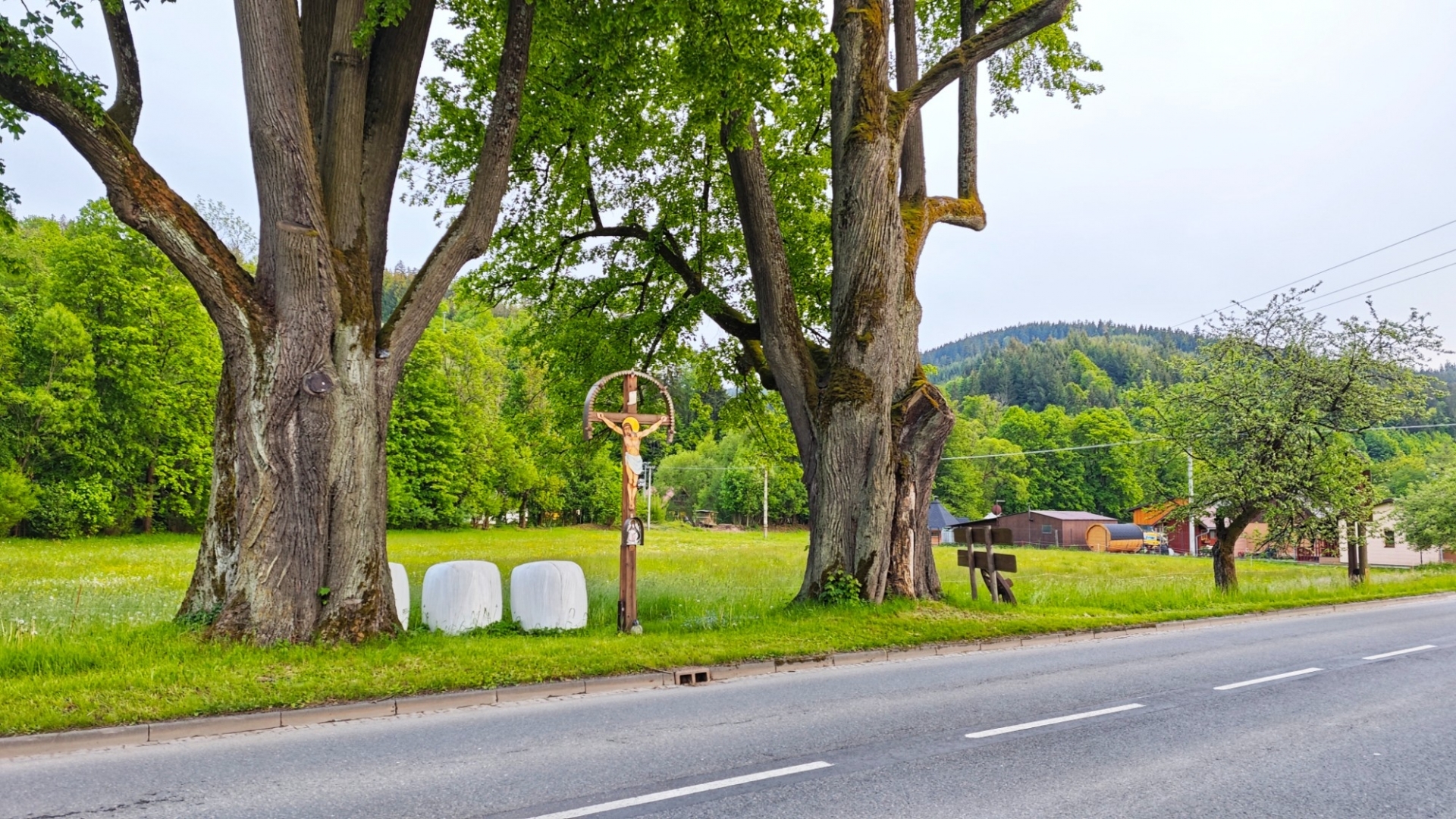 Po domluvě jsme příjezd do penzionu Dvůr u Kříža ve Velkých Karlovicích o jeden den zpozdili. Důvodem byla mizerná předpověď na čtvrtek, který měl být prvním dnem v horách Valašska. Čtvrtek jsme proto obětovali přesunu autem. Při průjezdu Zlínem jsme chytili průtrž mračen a to samé se stalo, když jsme se ubytovávali. Souvislý déšť se změnil v slejvák, jaký jsem již dlouho nezažil. Z odpoledního výjezdu na Soláň tedy nic nebylo a my skončili v nedaleké restauraci Gazdův dvůr, abychom se přesvědčili, že informace o velmi dobré kuchyni, zaměřené na alpskou, rakouskou, stále platí. Gazdův dvůr ve Velkých Karlovicích byl druhou možností, kde se dalo ubytovat, ale nakonec rozhodla cena. Jsme ubytováni v apartmánu za 1 600 Kč na noc, takže dnes za hubičku. Navíc máme možnost nahlédnout do hospodářství. Elektrokola parkujeme u stájí několika koní. Za ohrazenou pastvinou, kde se přes den pasou, již se zdvíhají kopečky Vsetínských vrchů.