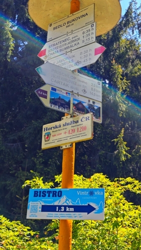 Sobotu konečně rozzáří slunce. V horách je však po ránu stále chladno a tak naše oblečení změn nedoznává. To platí pro nás bikery i pro pěší. Ti se vydávají od penzionu vzhůru po žluté na Kyčeru (743 m n. m.) a poté vyjdou po zelené na hřeben Javorníků nedaleko vrcholu Malý Javorník (1 019 m n. m.). Jedinou tisícovku na české straně hor, protože ty další již leží pouze na slovenské straně. Z jakého důvodu se v Javorníkách hranice nedrží hřebene, netuším.