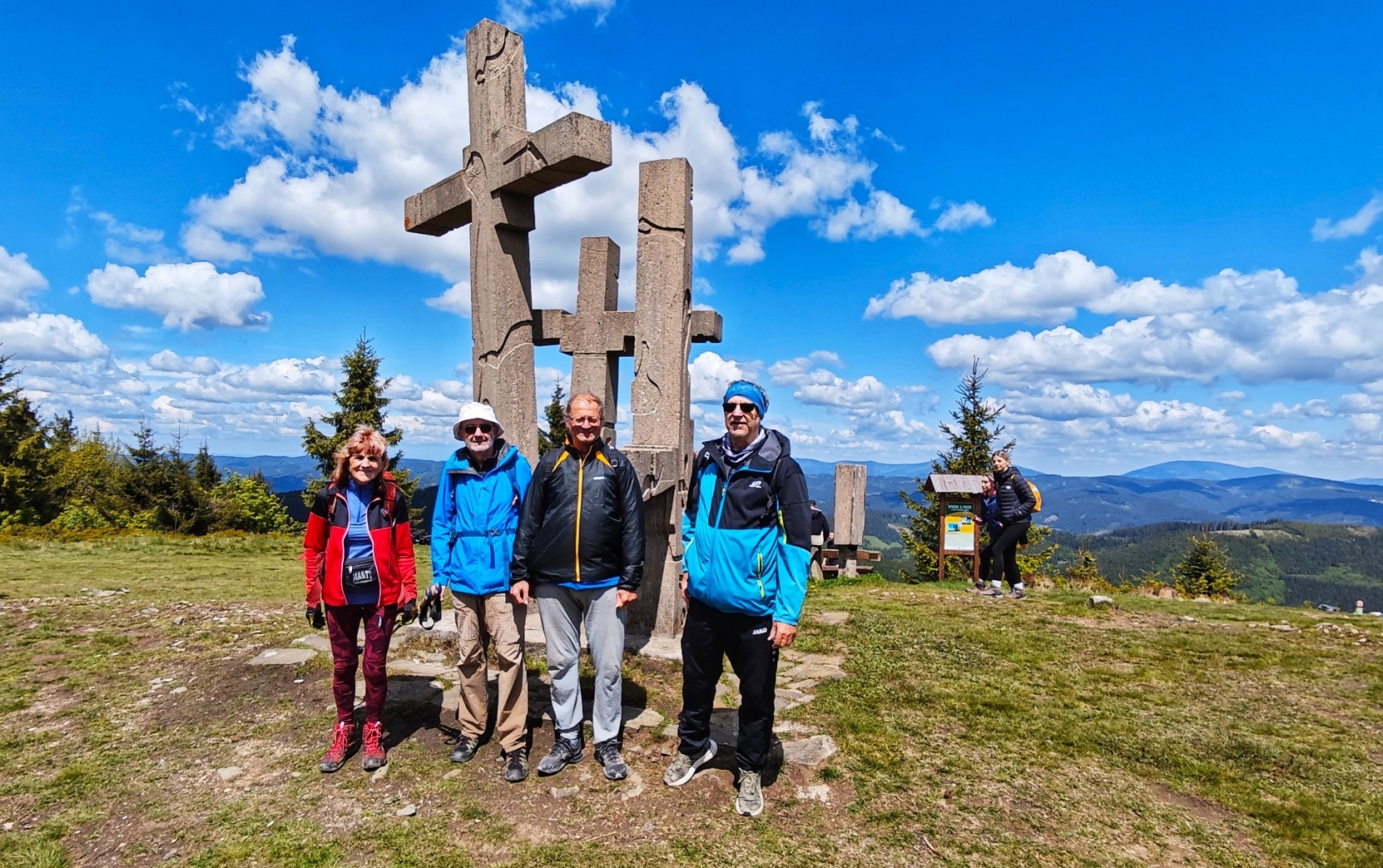 Večer přichází z dlouhého treku Roman s Marií. Unavení, ale šťastní, že zdolali krásnou trasu na pomezí tří pohoří. Od Vsetínských vrchů přes část Beskyd přešli do Javorníků. Roman doplnil svoje sběratelské úsilí o další českou tisícovku. Ty začal sbírat po vzoru kamaráda Venci, jež tisícovky s naší významnou pomocí před pár lety všechny zdolal, ale kterému již nyní zdravotní stav delší chůzi po horách neumožňuje. Čiperná Marie převzala jeho žezlo a společně s Romanem vymetají kdejaký kout naší vlasti, kam všichni čtyři společně dojedeme. Na elektrokola si zatím usednout odmítají.