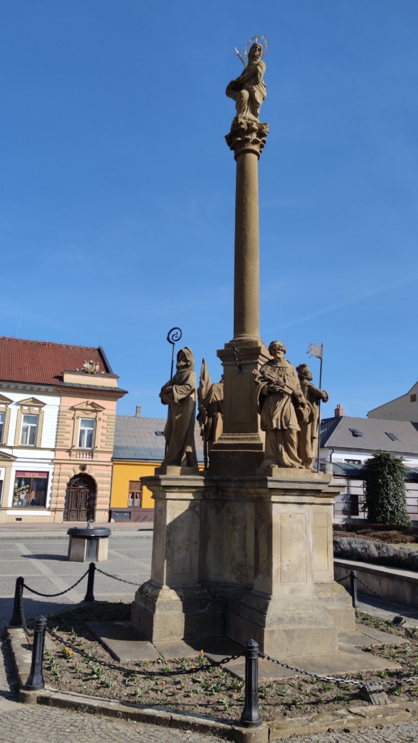 Mariánský sloup z konce 17. století na náměstí ve Vizovicích.