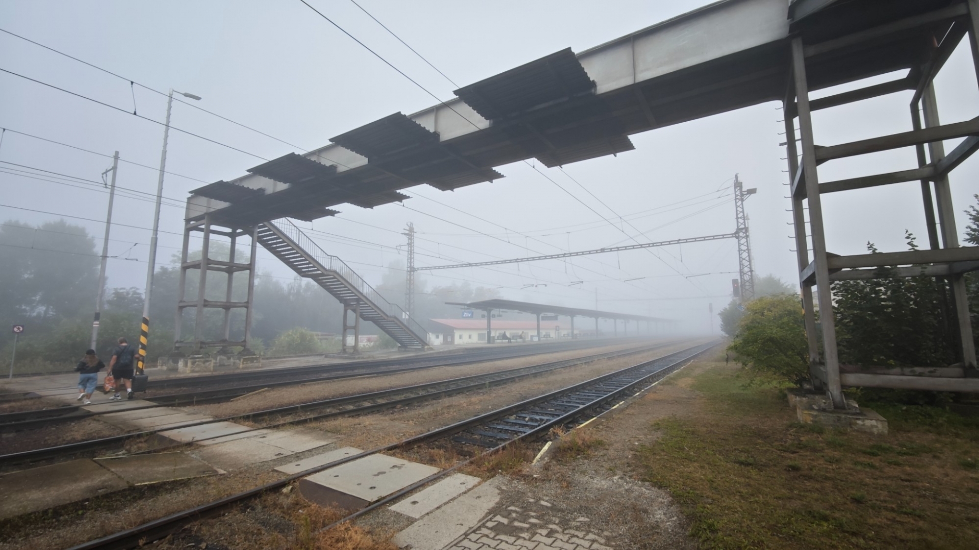 Když vyjíždím ze Zlivi, je mlha. Počasí na cestování vlaky ale máme mít ideální.