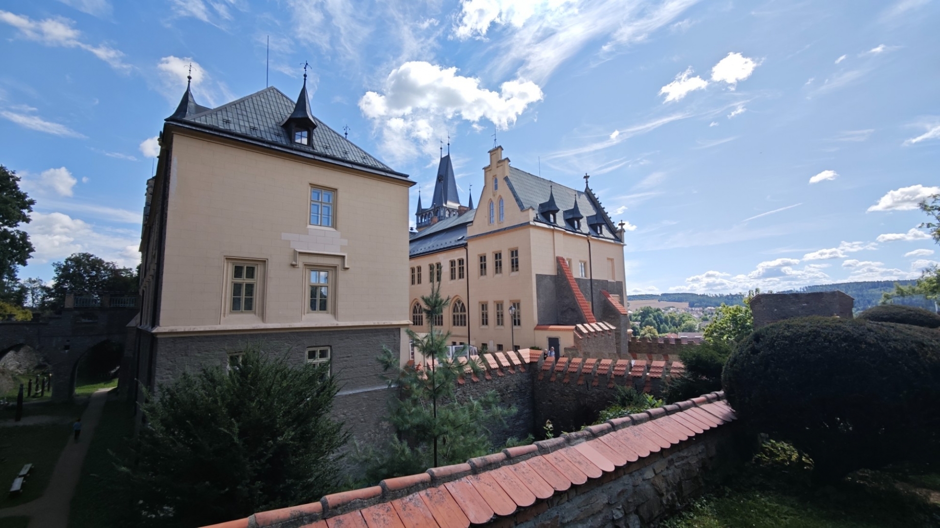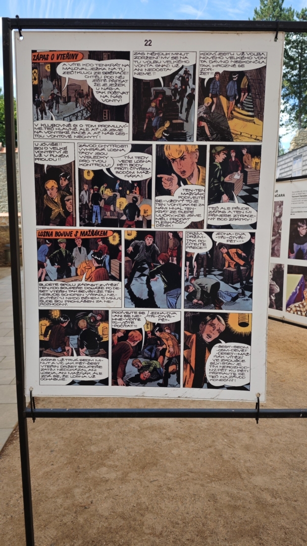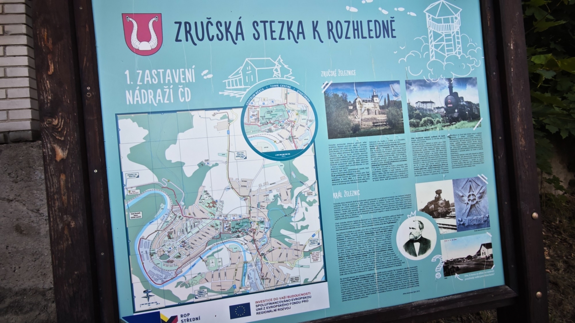 Posázavský pacifik projíždí dvě tratě. Slavnější dolní vede z Prahy přes Davli do Čerčan s odbočkou do Dobříše. Horní Posázavský pacifik pak spojuje Čerčany a Světlou nad Sázavou v kraji Vysočina. Touto tratí se vydáváme my. Na trase projedeme mnoho tunelů a budeme míjet několik hradů a zámků. Čím dál jsme od Prahy, tím víc ubývá chat a domků okolo řeky. Franta se dává do řeči s vedle sedící ženou a skoro nás donutí v Sázavě o kláštera vystoupit. Postupně přibývá vodáků. Ve vlaku i na vodě. První zastávku děláme ve Zruči nad Sázavou. Jdeme k trojkřídlému pseudogotickému zámku, jenž byl vystavěn v letech 1872 - 1878 na základech zchátralého renesančního domu. Později byla zbořena část hradeb a vystavěna novogotická vstupní brána. Zámek dostal gotické štíty, věžičky a vikýře. Nás na nádvoří zaujmou panely s kreslenými příběhy Rychlých šípů. Nebudu jediný, kdo vyrůstal s knihami Jaroslava Foglara.