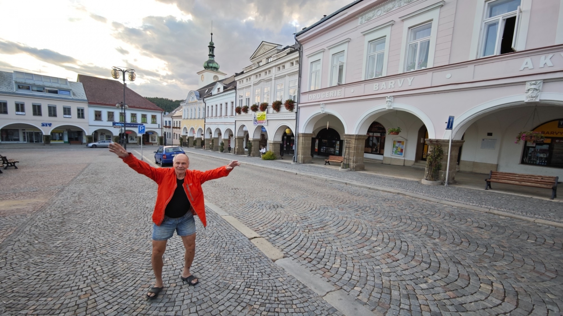 Ústí nad Orlicí je první městem, které si můžeme prohlédnout. První naše kroky však míří do venkovní zahrádky Chaplin restaurantu. Najíme se dobře, kachna s červeným zelím nemá chybu, ještě ji zalijeme několika pivy a večer se jdeme projít na Mírové náměstí a do parku je kostelu Nanebevzetí Panny Marie. Historické jádro města bylo vyhlášeno městskou památkovou zónou. Všímáme si hezké radnice a domů s podloubím. Pak to obracíme zpět k penzionu, jen Frantovi čtyři piva nestačila a jde sám hledat další hospodu. Po dvou hodinách i on cestu na penzion najde.