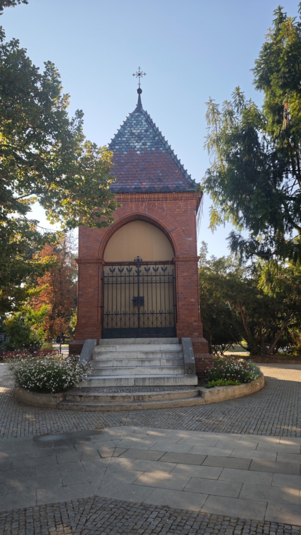 Novogotická kaplička je postavena na památku epidemie cholery z roku 1892. Jako stavební materiál byly použity červené cihly z lichtenštejnské stavební huti. (Mapy.com)