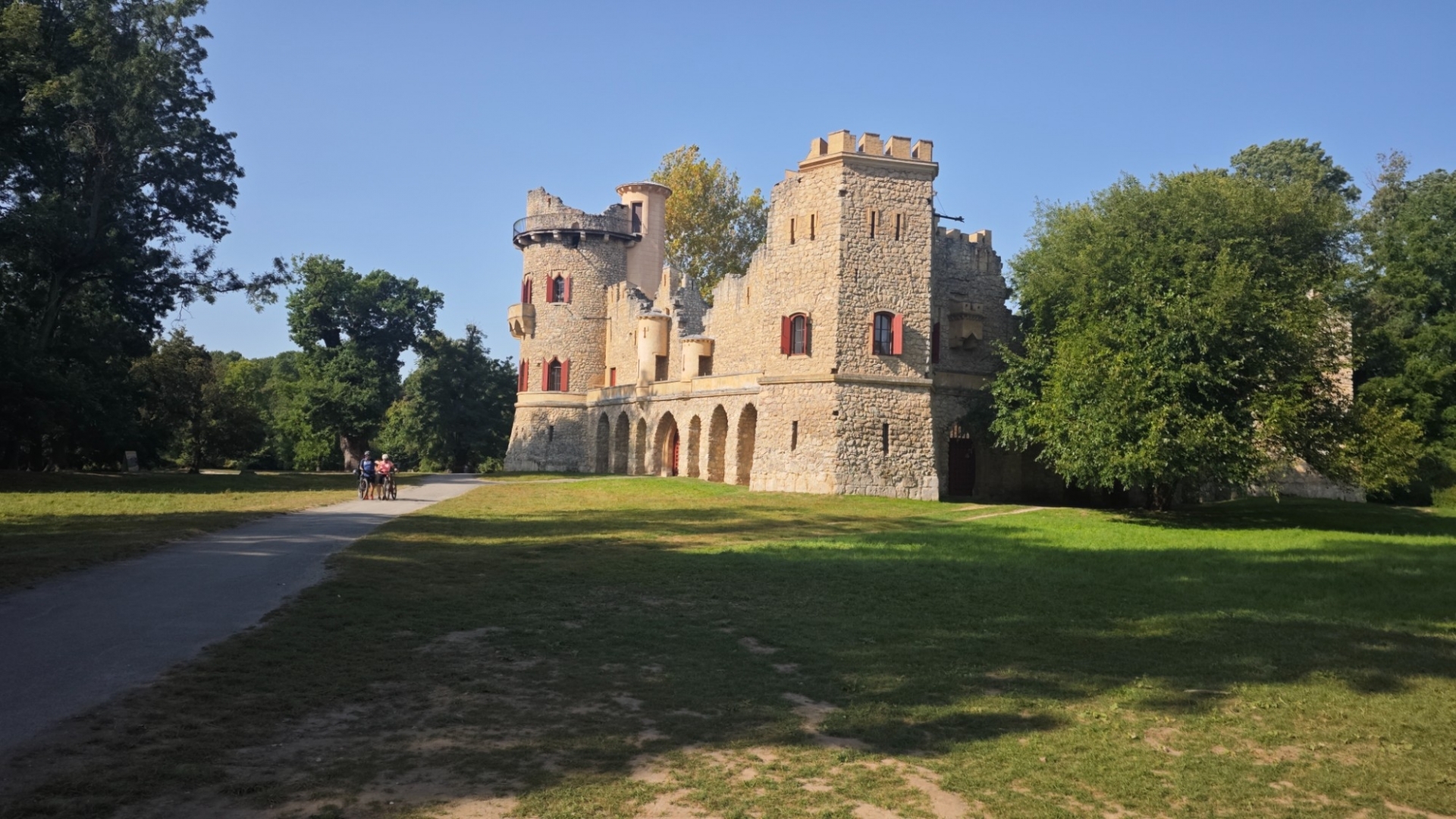 Kola máme kvalitní. Projedeme pěší zónou zpět k hradu a našemu penzionu, odkud si projedeme lužní lesy přírodního parku Nivy Dyje k Lednicko-valtickému areálu. Krajina je velmi podobná nám známé třeboňské. Příjemný průjezd lesem končí u Janova hradu. Předtím ještě omylem zajedeme k loveckému zámečku. U hradu mne láká ochutnat místní burčak, ale to je velký omyl. Za 70 Kč dostávám maličký kelímek s něčím nechutně zkysaným. Dvakrát uskrknu, podám divný mok Jirkovi a shodneme se, že tenhle patok se pít nedá. Zbytek vyleju do trávy a skěrem k mladé slečně, která mi to prodala, jen smutně pronesu: "Radši to už jako burčák neprodávejte. Je to kyselé a cítím tam líh.. "