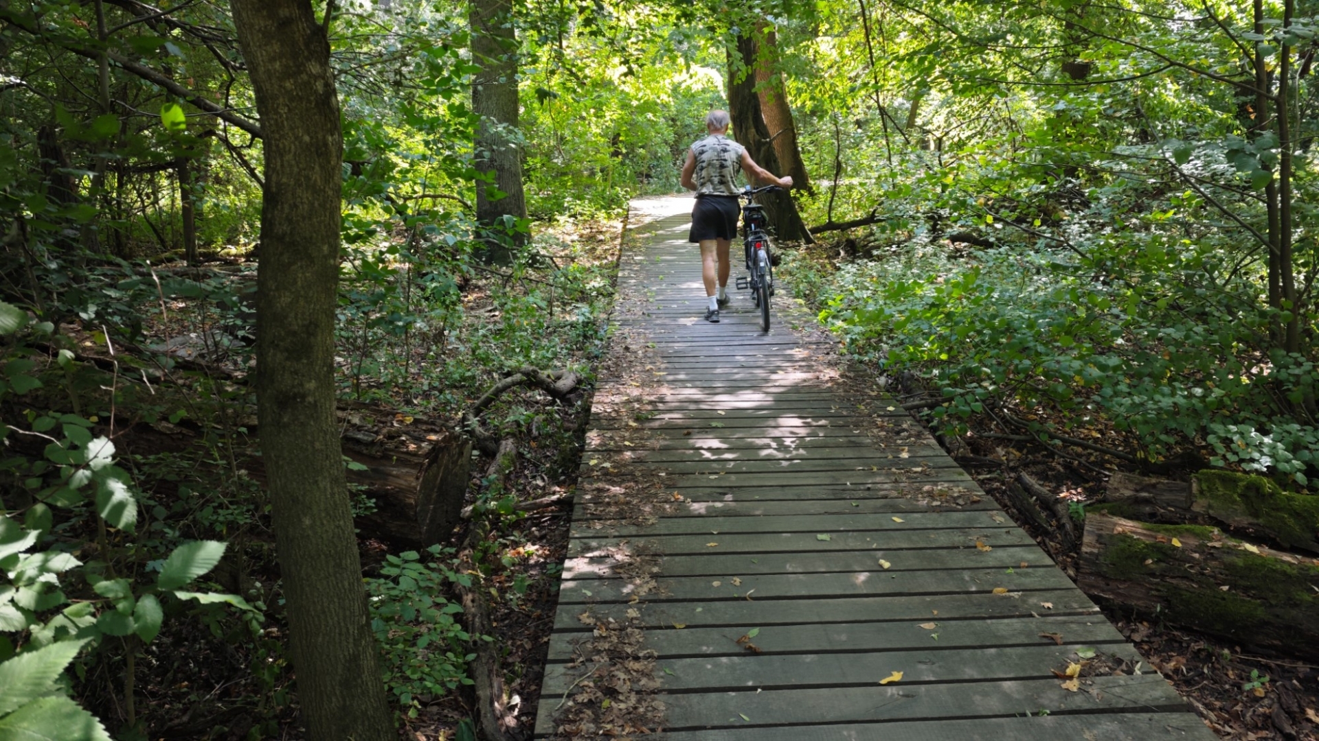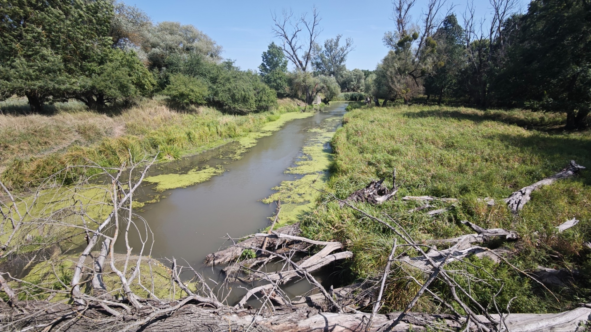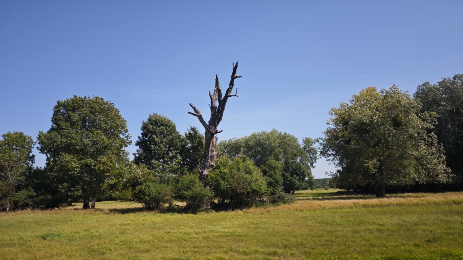 Ještě se dost zapotíme, než dojedeme k soutoku řek, k hlavnímu cíly naší cesty. Znovu kufrujeme a to tak, že omylem jedeme do Rakouska. Značky cyklotras zde postrádají napsaný cíl. Vidíte jen nápisy 42 A a 42 B. Čeká nás asi 15 km dlouhá cesta ve velmi silném protivětru. I přes pomoc elektromotorku se na otevřených rovinkách dost trápím, je to peklo. Začíná mě bolet hlava. Krajinu v okolí ani moc nevnímám, byť osamocené duby Pohanska, které oživují okolní louky, stojí za povšimnutí. NPR Lanžhotské pralesy chrání okolí soutoku Moravy, Dyje a Kyjovky. Tato oblast měla stát pátým národním parkem České republiky, ale po protestech místních je od 1. července 2025 jen chráněnou krajinnou oblastí. Nová CHKO Soutok zahrnuje celý Dyjský trojúhelník s oborou Soutok, přírodní parky Niva Dyje, Mikulčický luh a přilehlé nivy Moravy a Dyje s nejrozsáhlejším komplexem lužních lesů a luk v celé střední Evropě. Na "Moravskou Amazonii“ na jihu navazuje slovenská CHKO Záhorie. CHKO Soutok se překrývá.s Lednicko-valtickým areálem a Pálavou, takže jde o opravdu velkou oblast. Tvoří ji dvě části přerušené městem Břeclav. Větší část CHKO náleží vlastnímu soutoku, menší zahrnuje meandry Dyje mezi Novými Mlýny a Břeclaví.