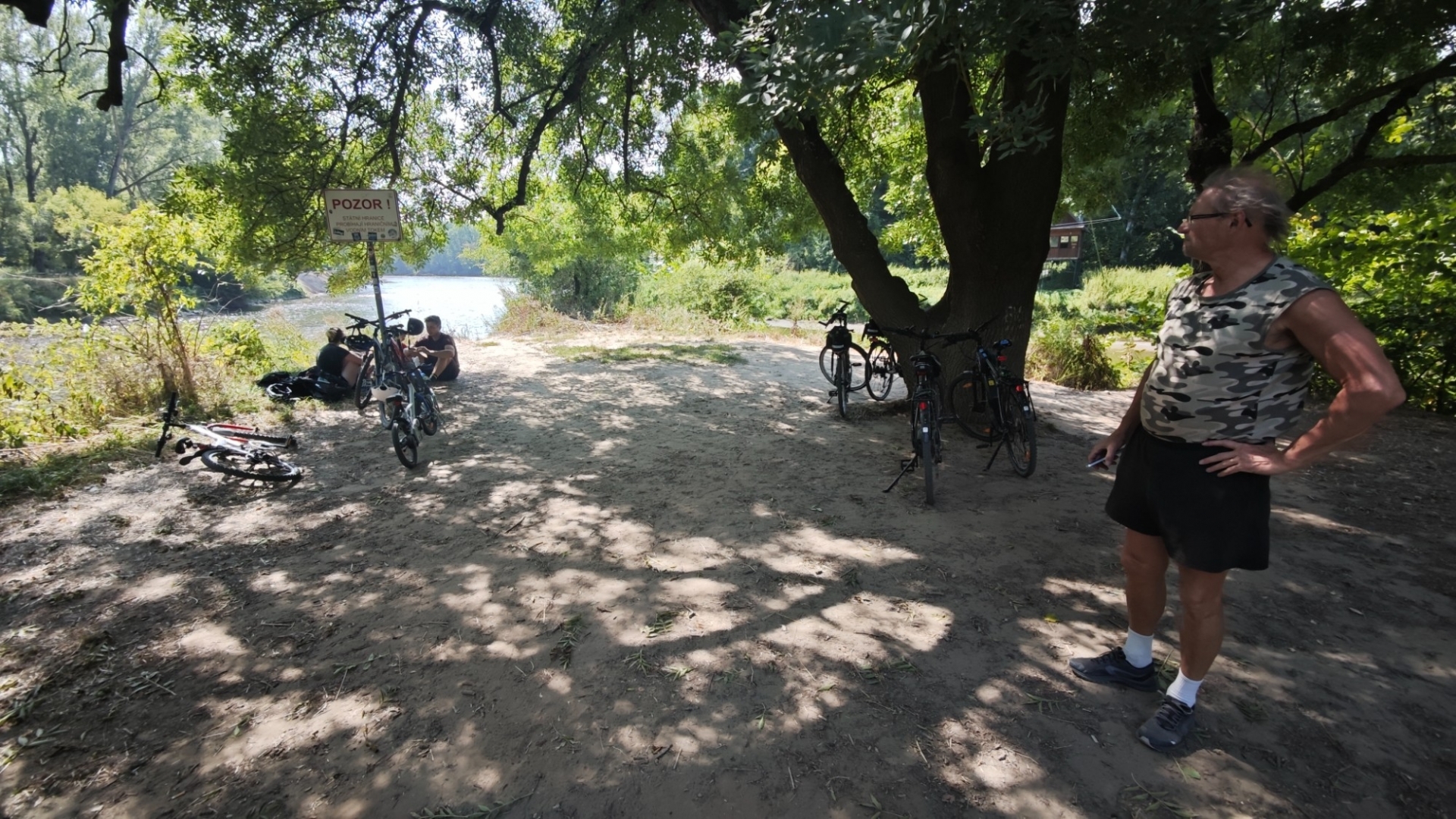 Vedro vrcholí, přesto neměníme plán a vyrazíme na elektrokolech do okolí Břeclavy. Projedeme si Nivu Dyje do Lednice, zamotáme se v lesích u Valtic a poté proti silnému východnímu vichru zamíříme k soutoku Moravy a Dyje. Cítím již únavu a tuším, že dnešní den může být posledním cestovatelským. Pokud se nám podaří vlaky ČD naplánovat cestu až domů, což není jisté.