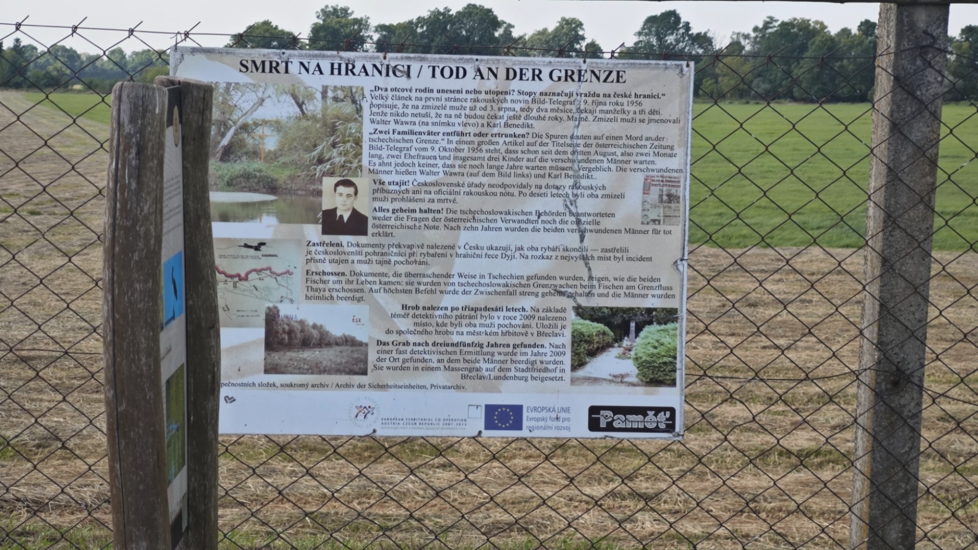 Projíždíme hodnotnou krajinu a trochu té nepřízně počasí musím snést. Jirka mi poslední kilometry rozráží vítr a já se ho snažím udržet. Nasadil ostré tempo, asi i on chce mít tyhle rovinky za sebou. Cesta kolem železné opony, jejíž malý zbytek spatříme, ukončí plot, za kterým pokračujeme k soutoku po povalovém chodníku. Je široký a zde se po něm převážně jezdí na kolech. Pěší turisté jsou zde ve velké menšině, vlastně jsme jich minuli jen několik. Zato bikerů desítky.